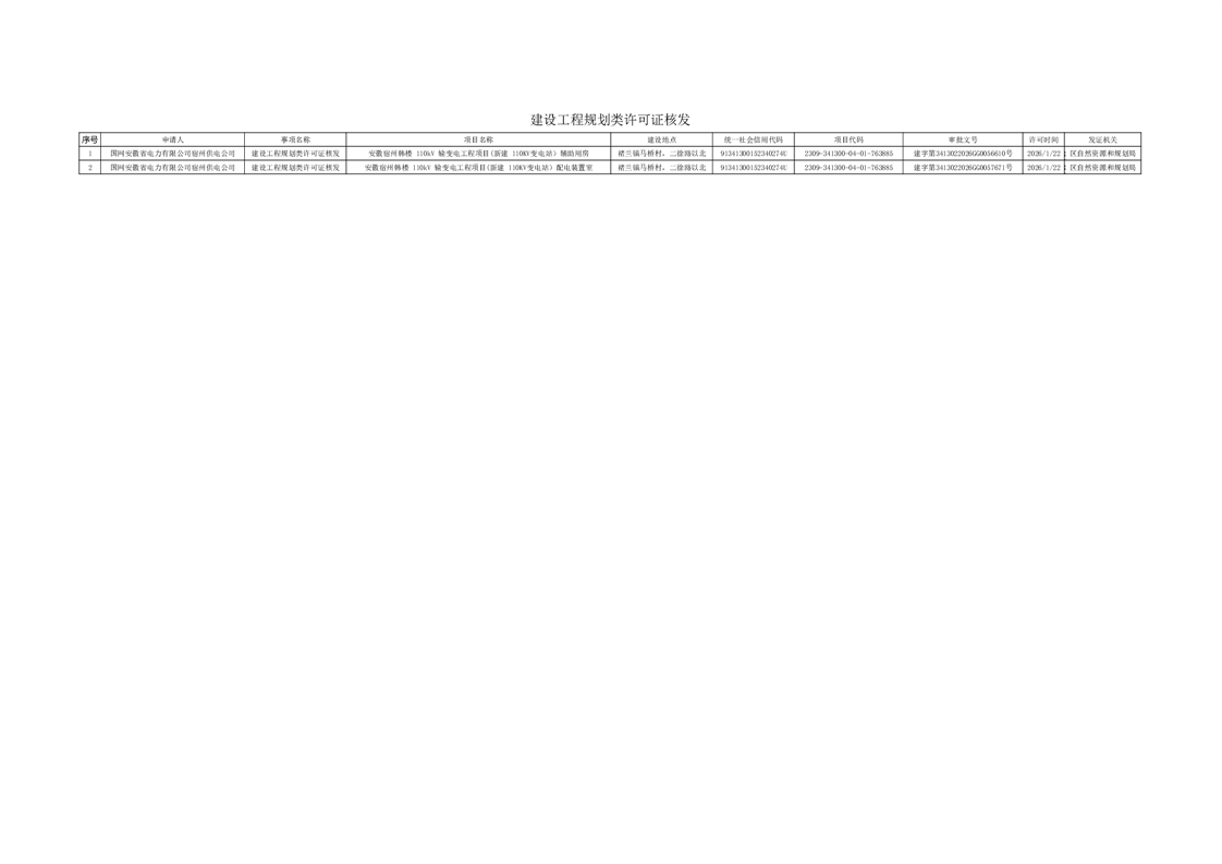安徽宿州韩楼110kV输变电工程项目建设工程规划类许可证核发