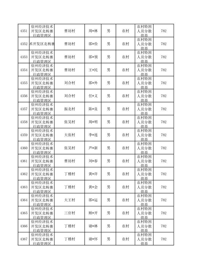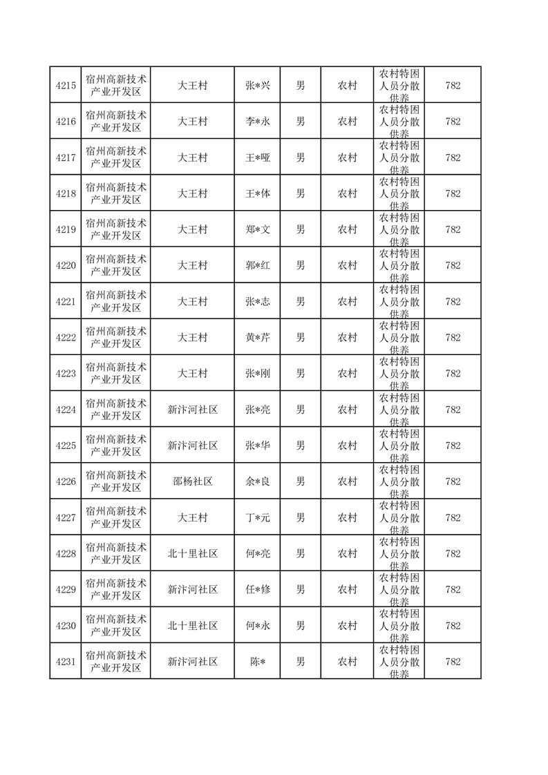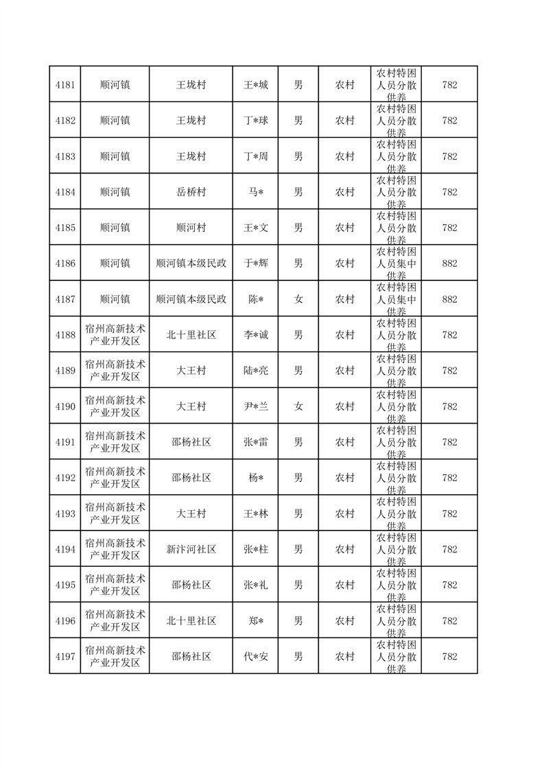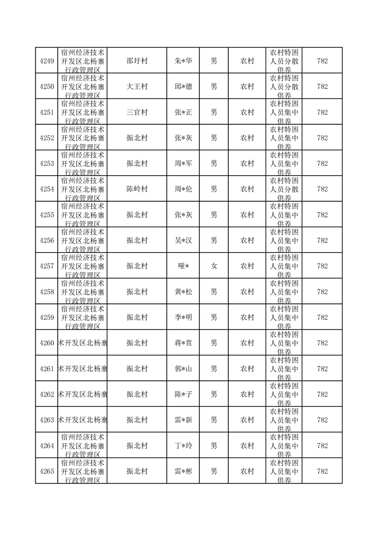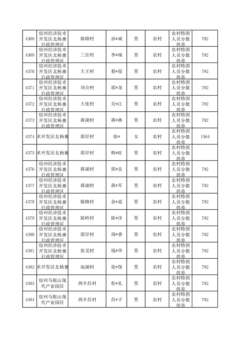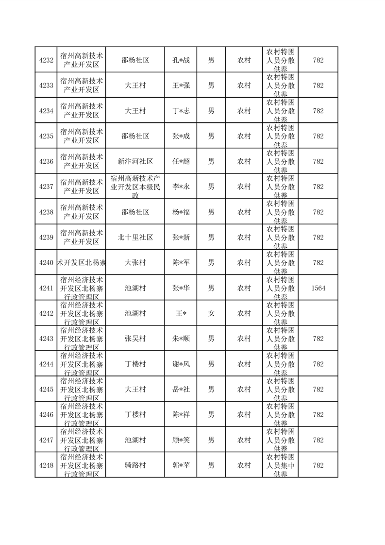 埇桥区2025年12月特困人员名单