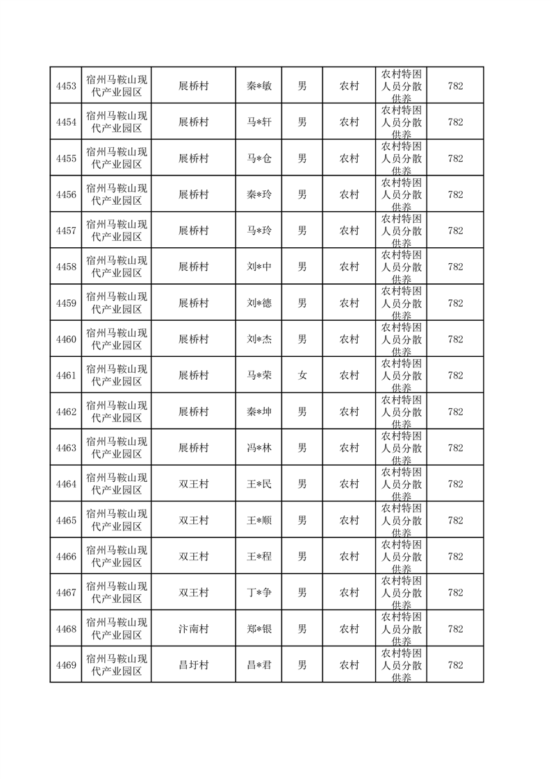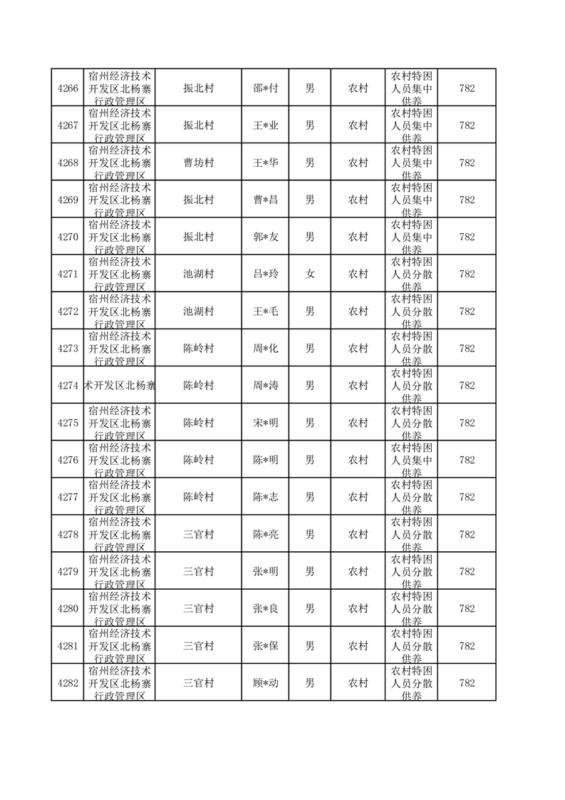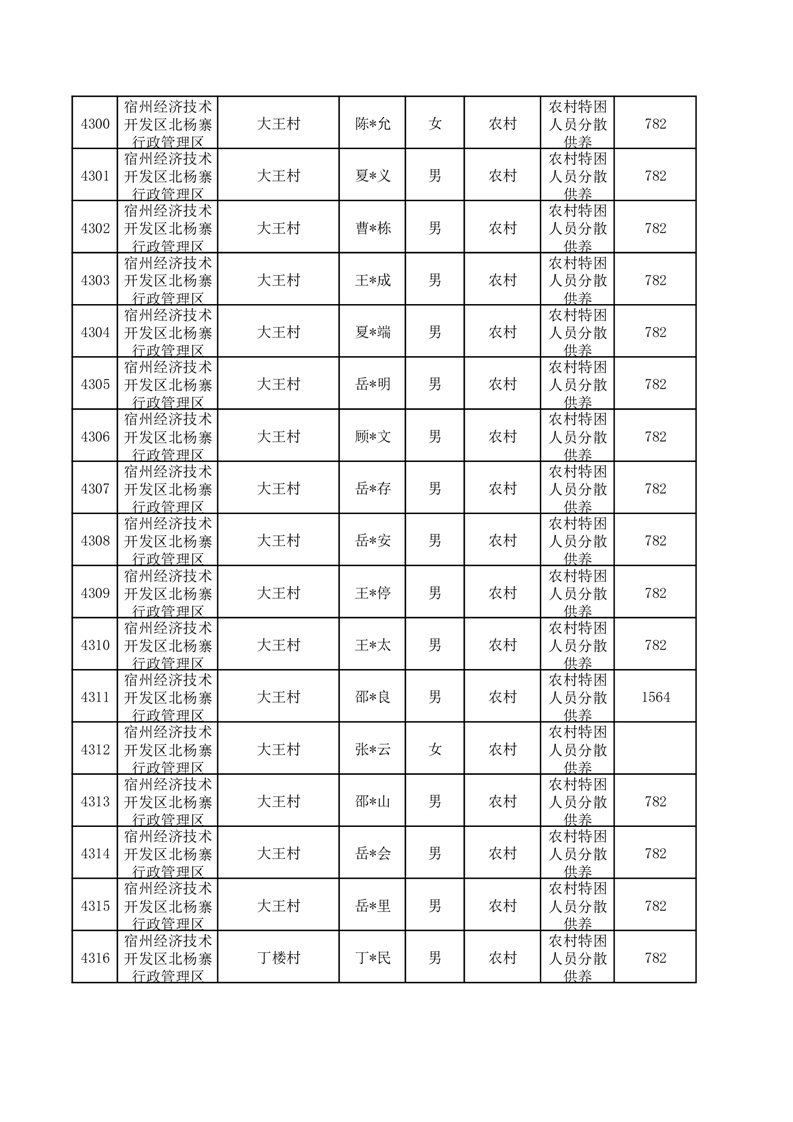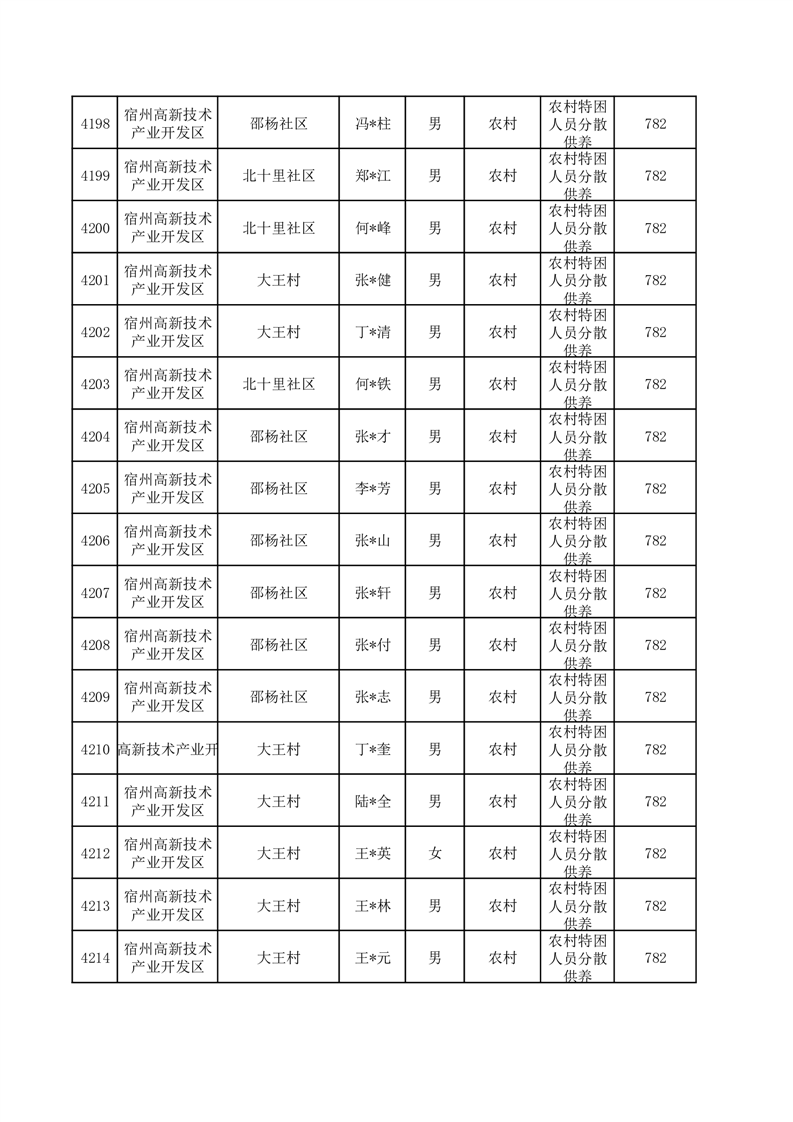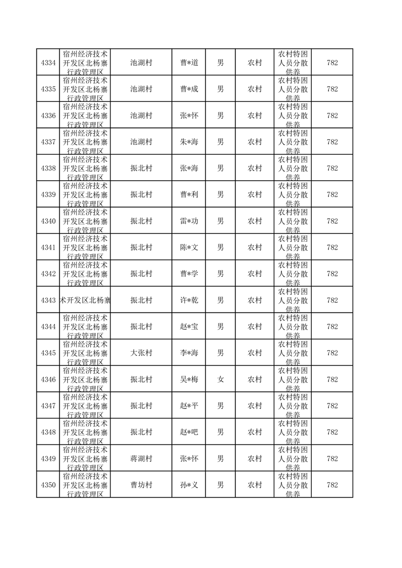 埇桥区2025年12月特困人员名单