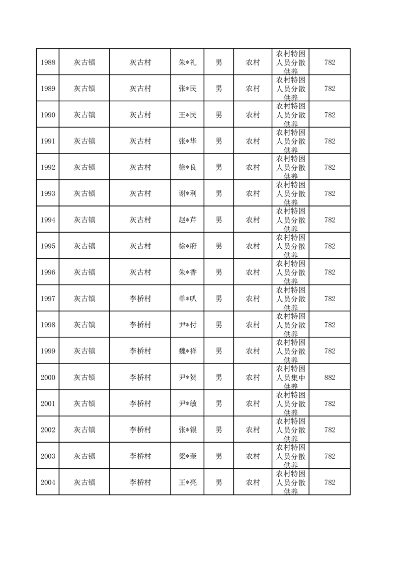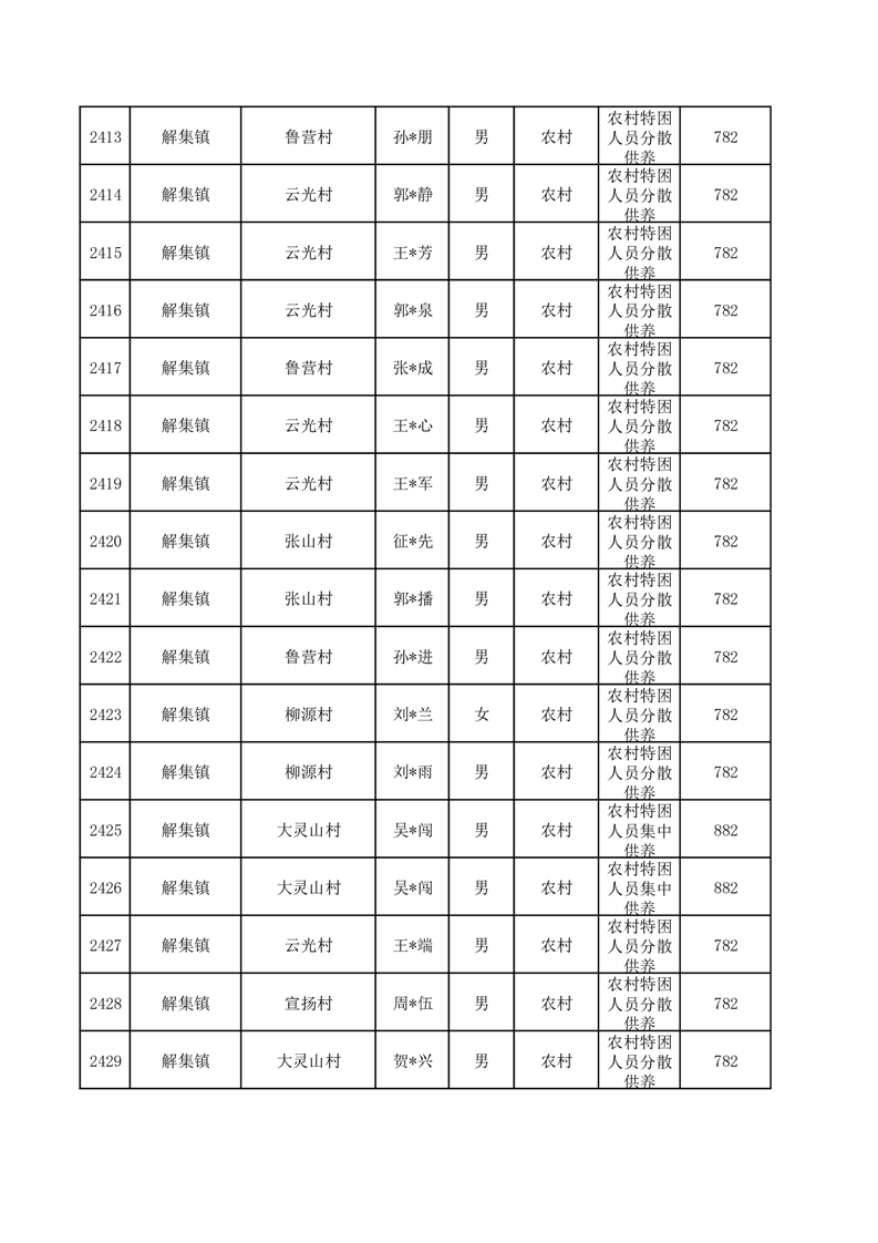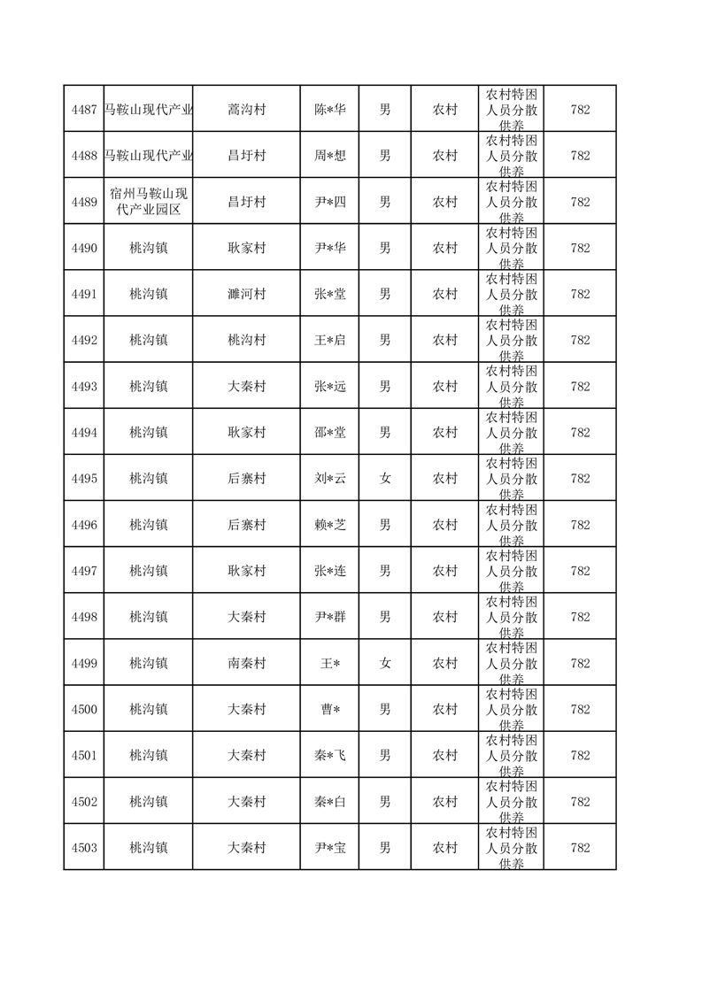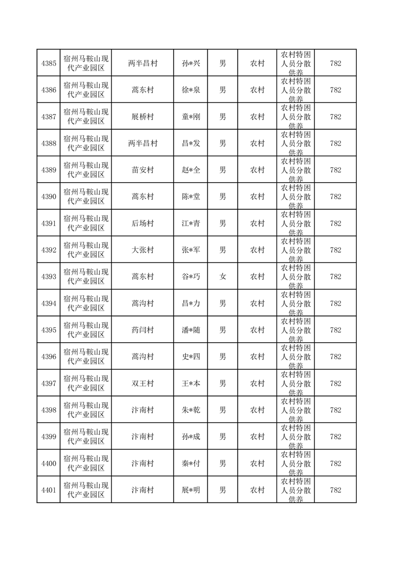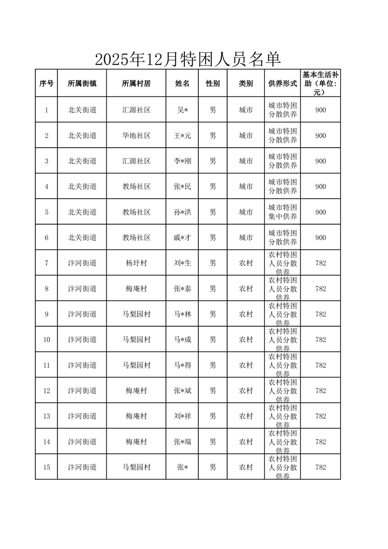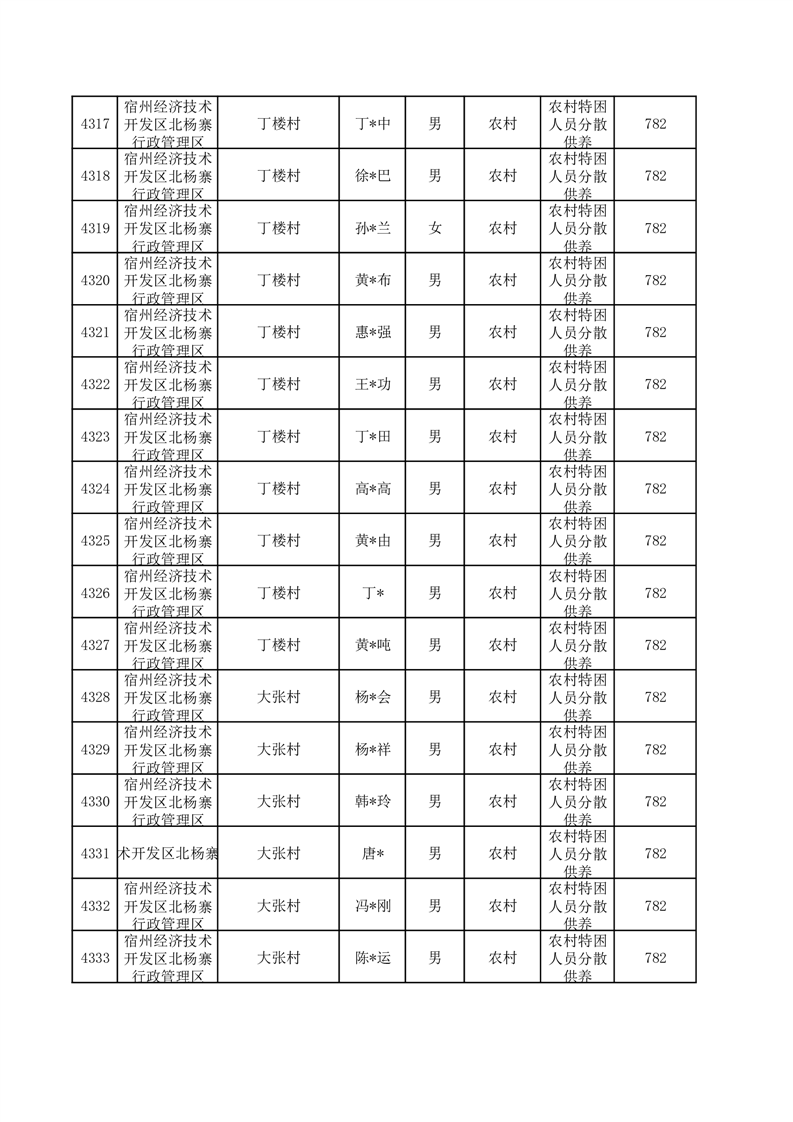 埇桥区2025年12月特困人员名单