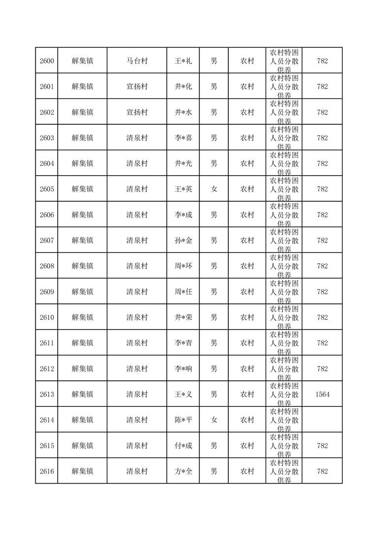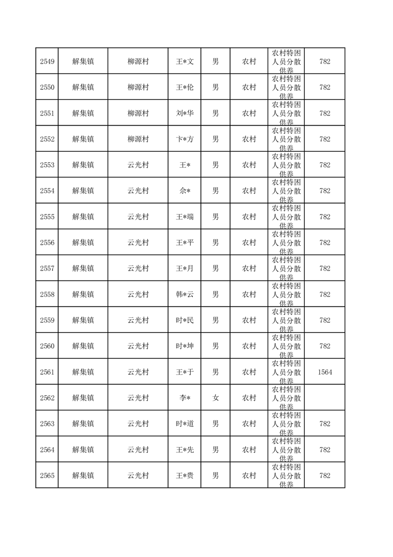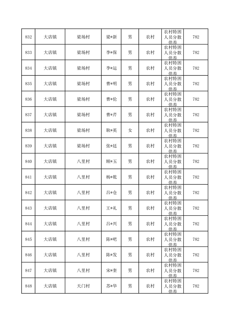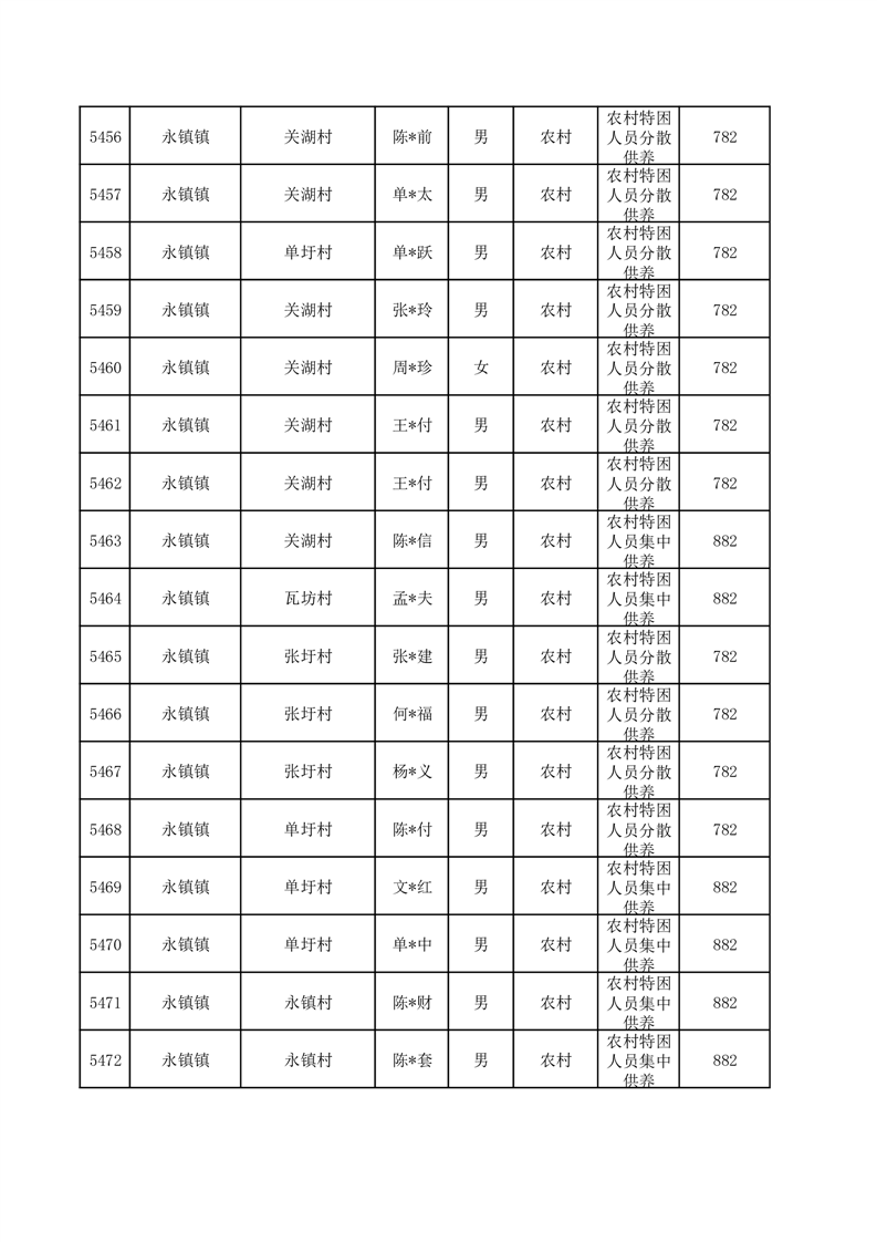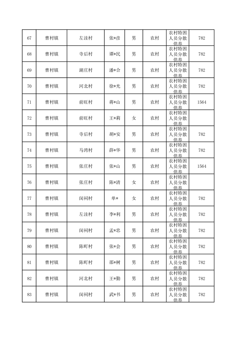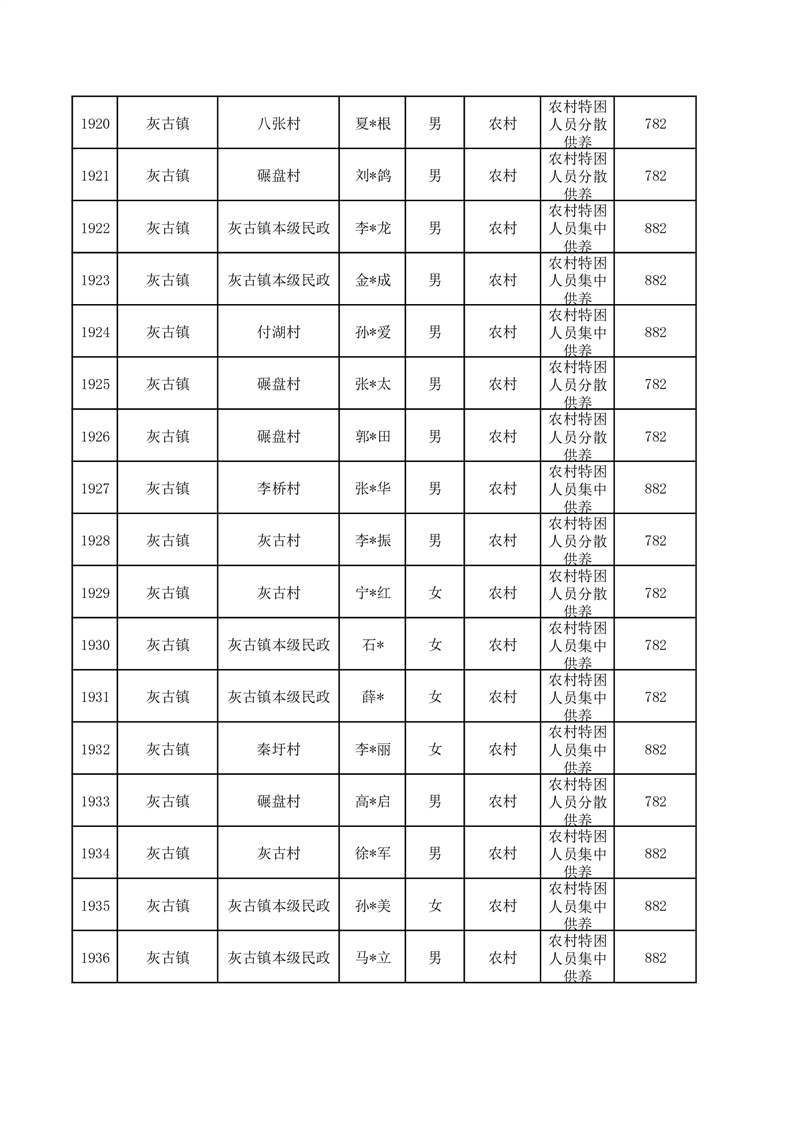 埇桥区2025年12月特困人员名单