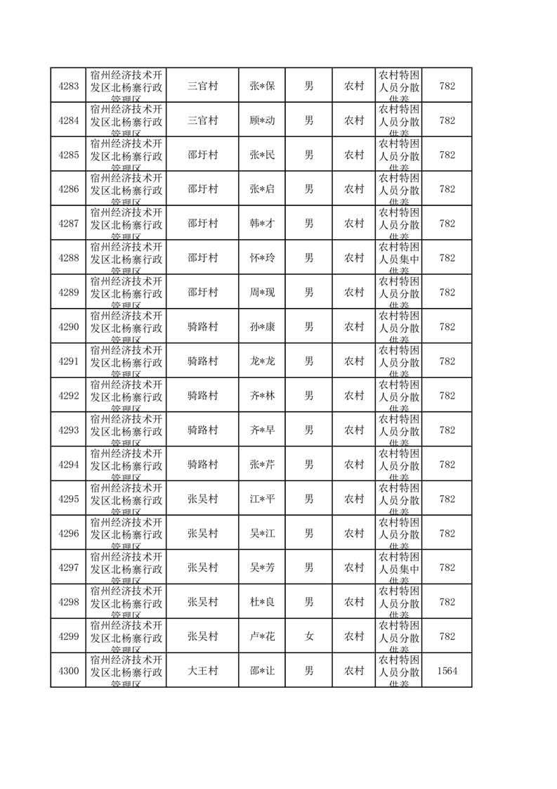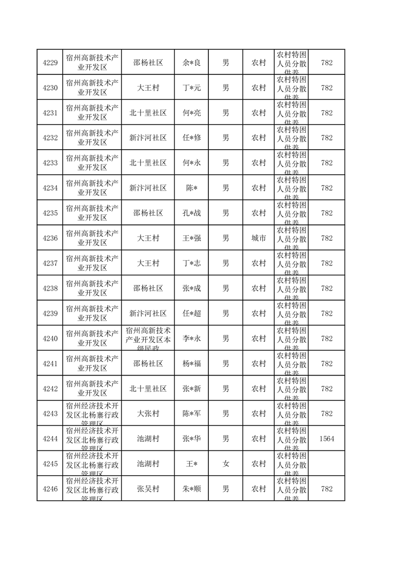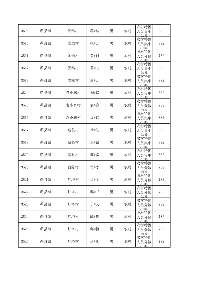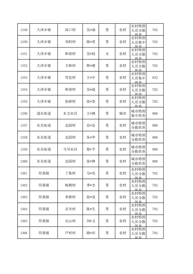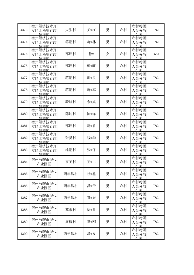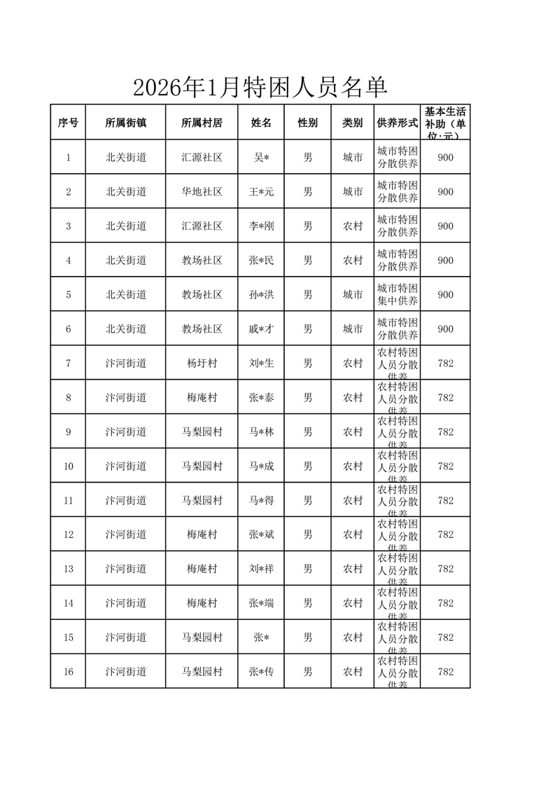 埇桥区2026年1月特困人员名单