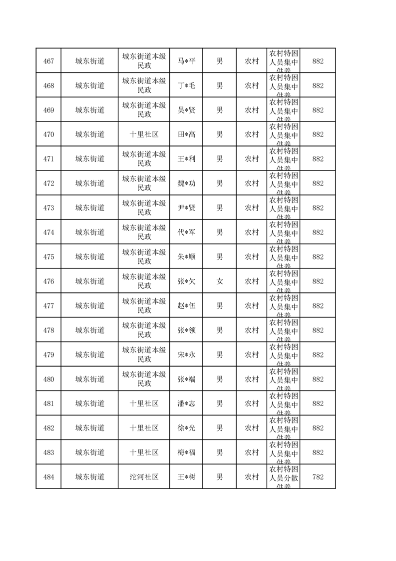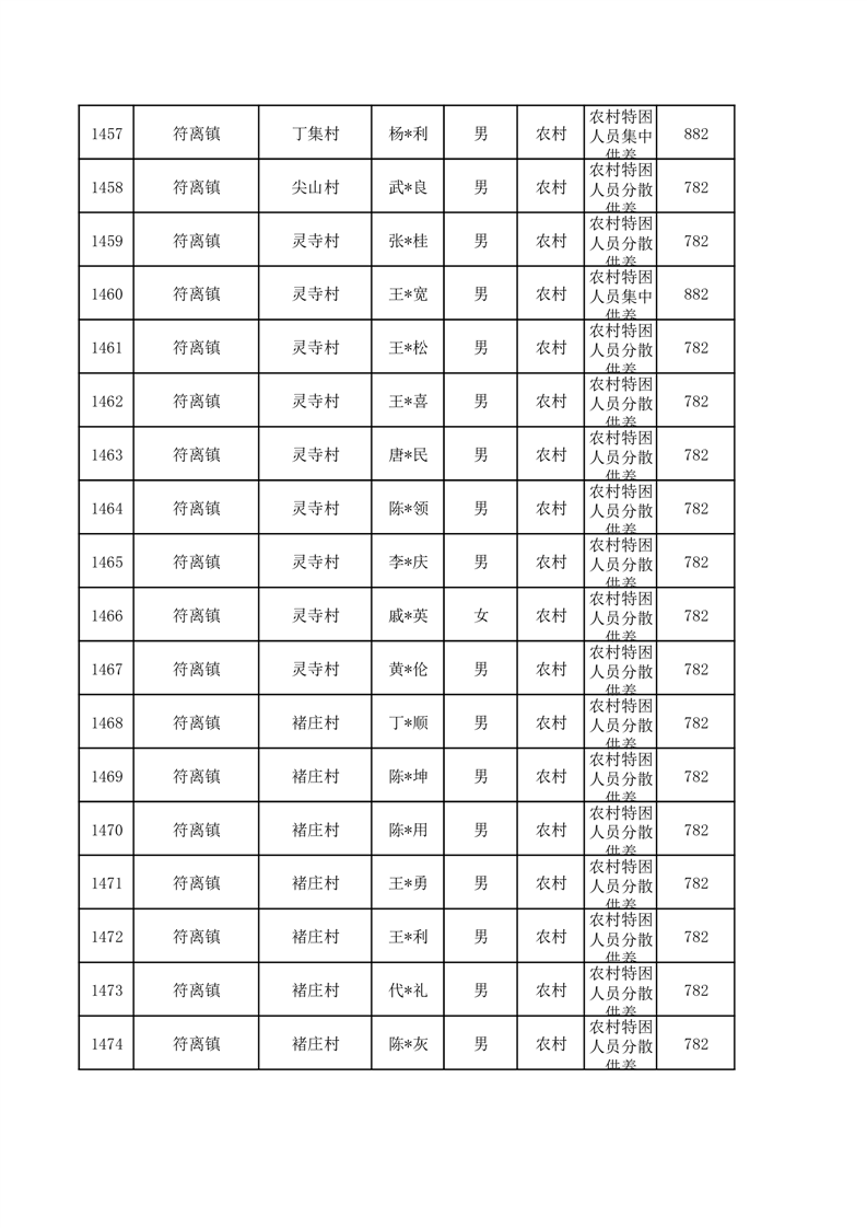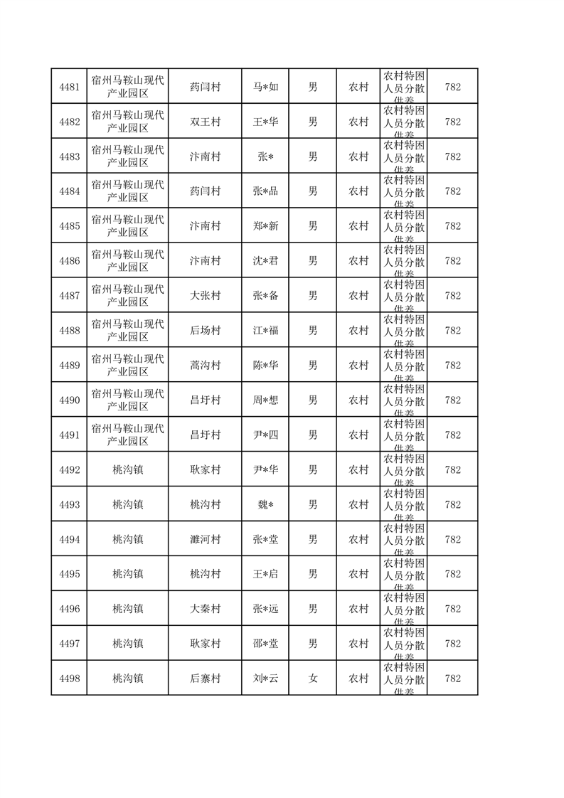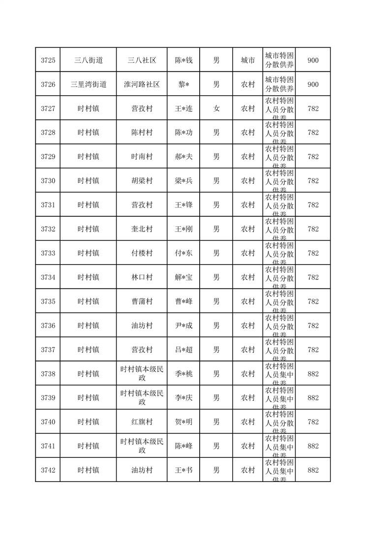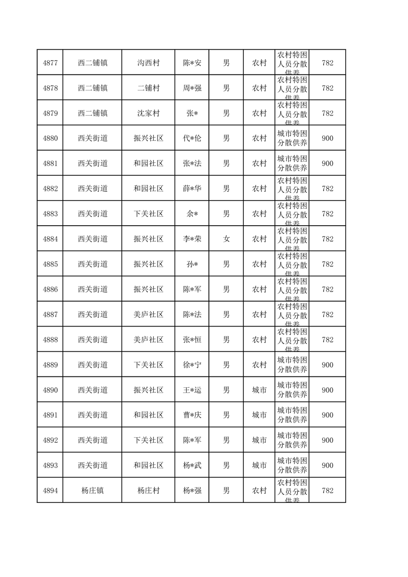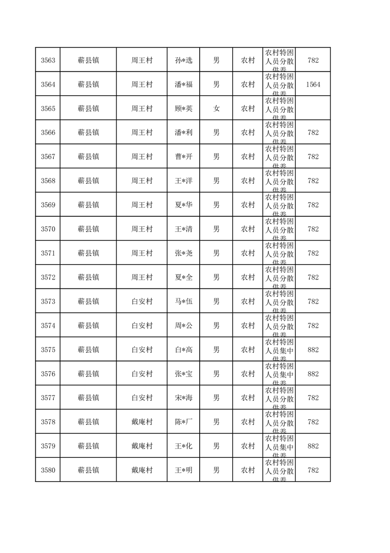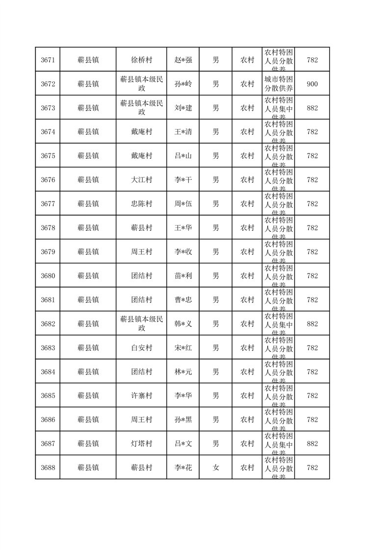 埇桥区2026年1月特困人员名单
