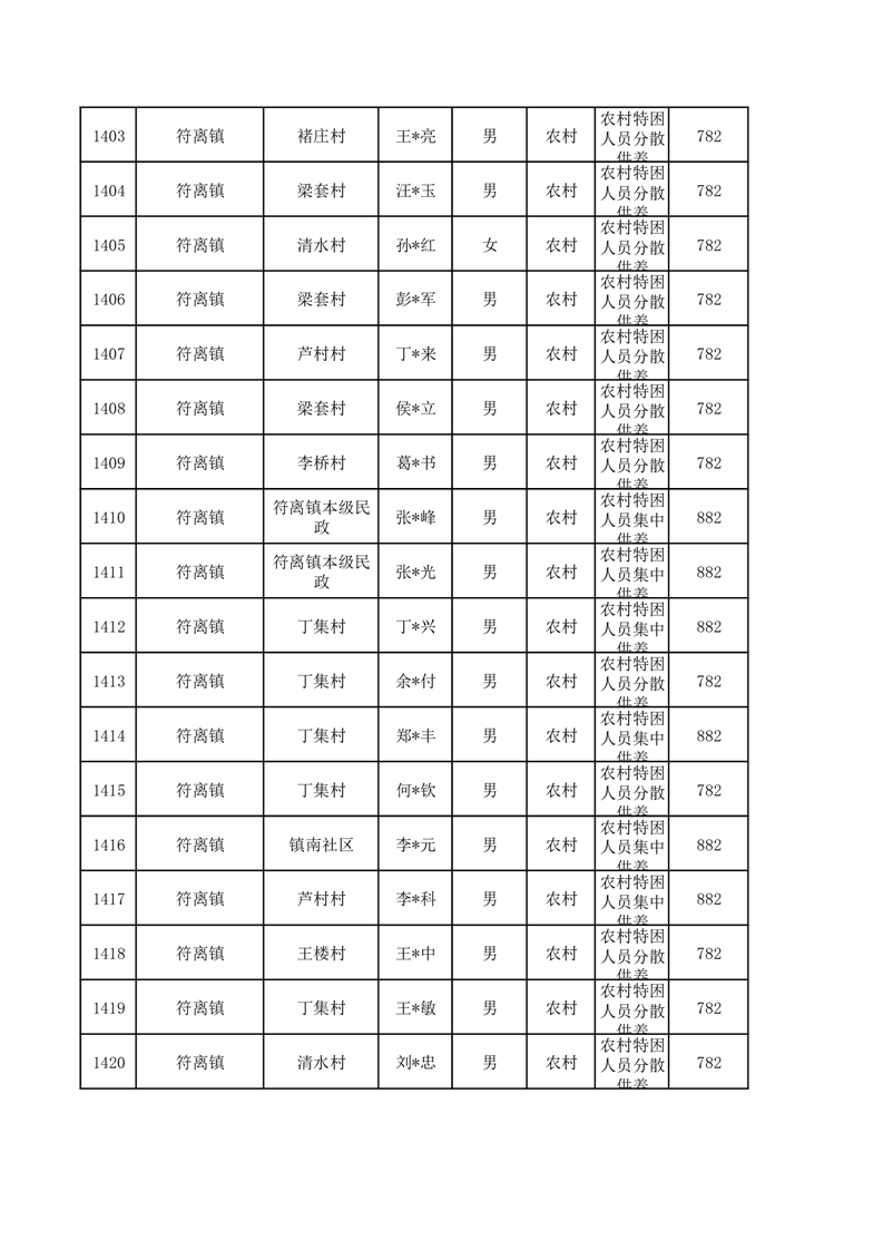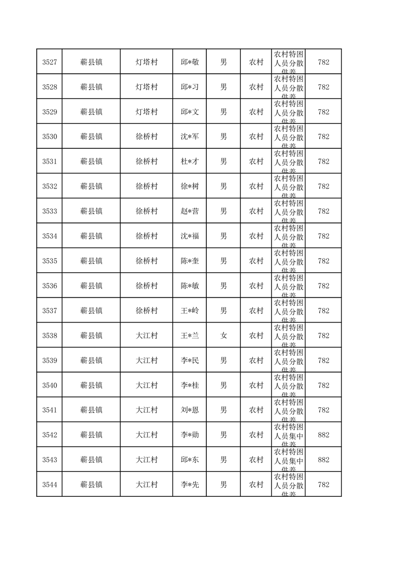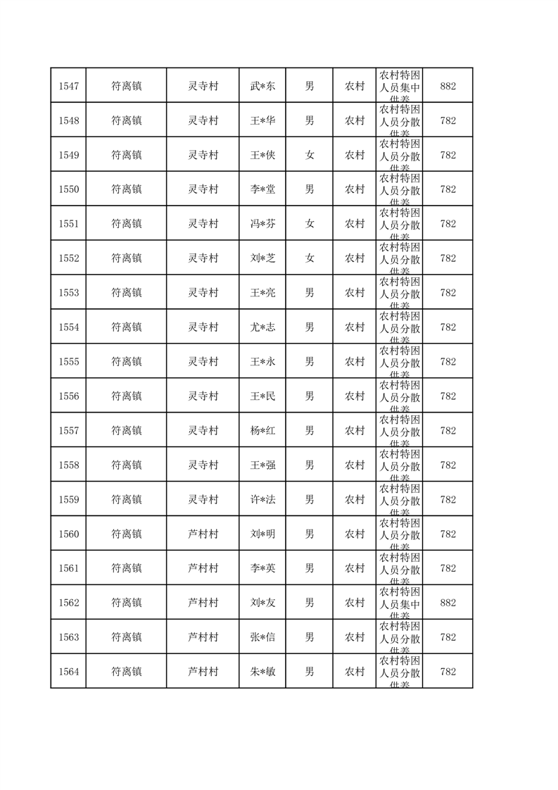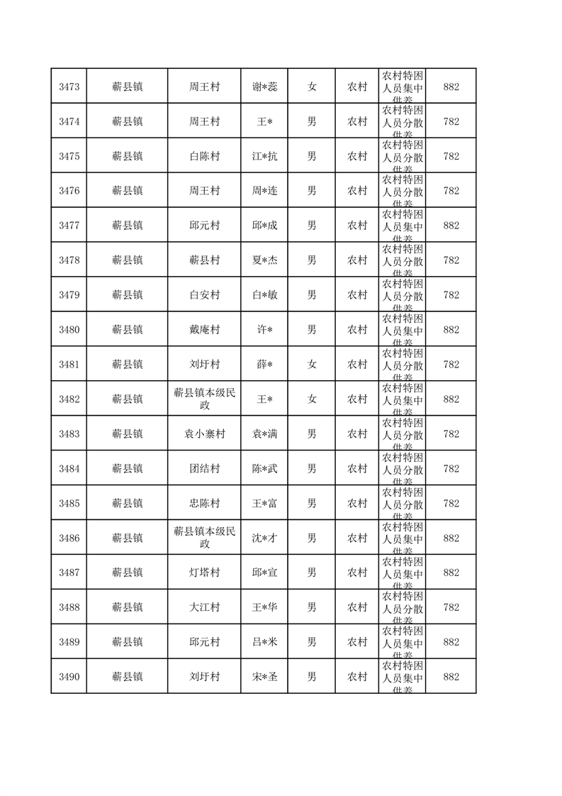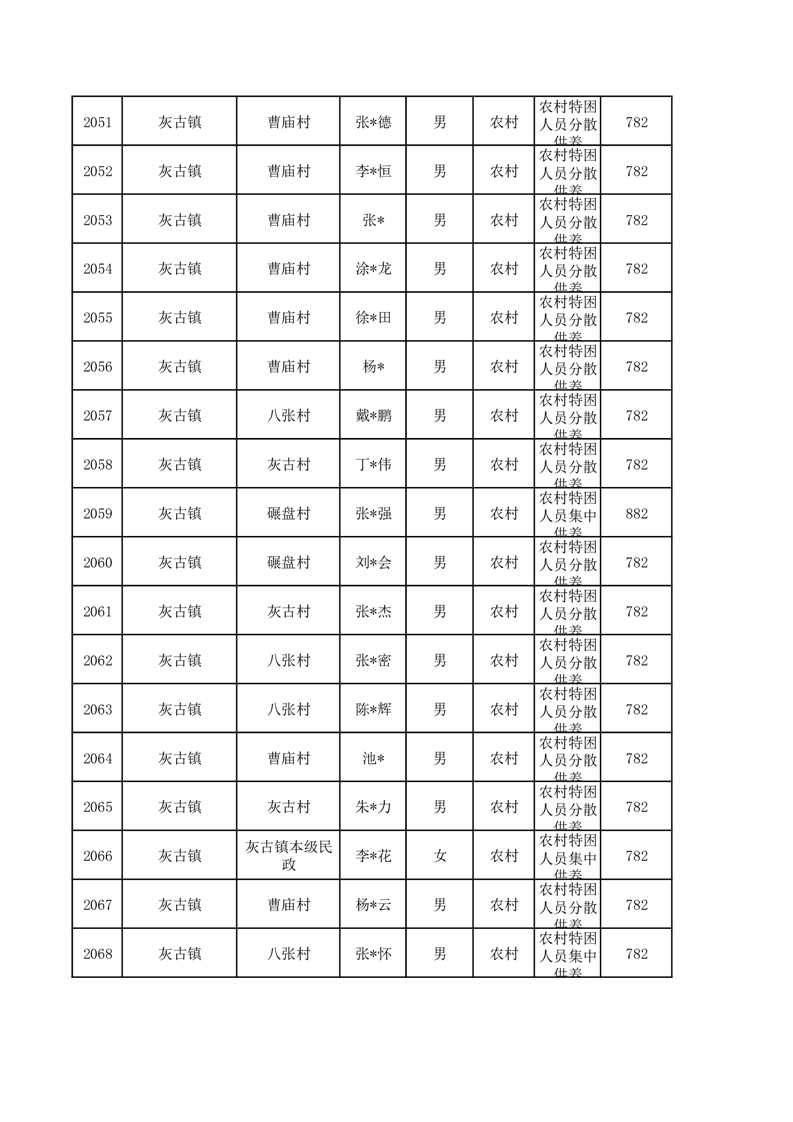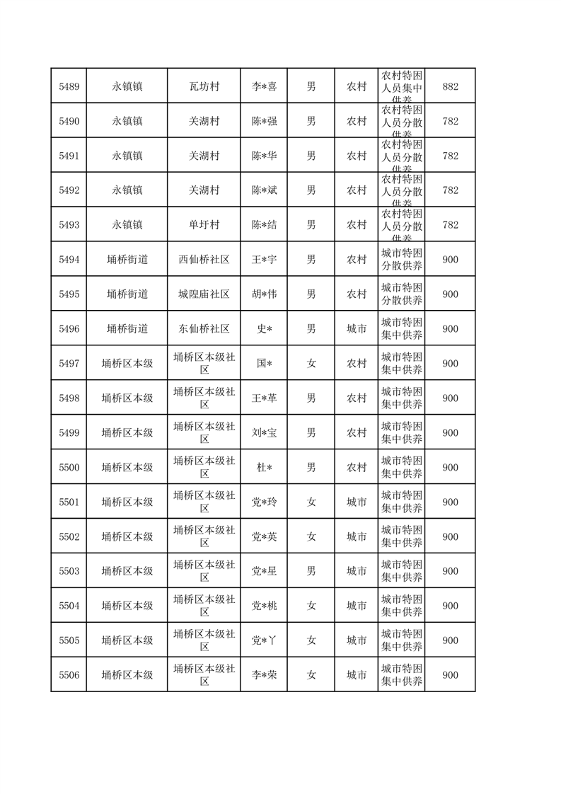 埇桥区2026年1月特困人员名单
