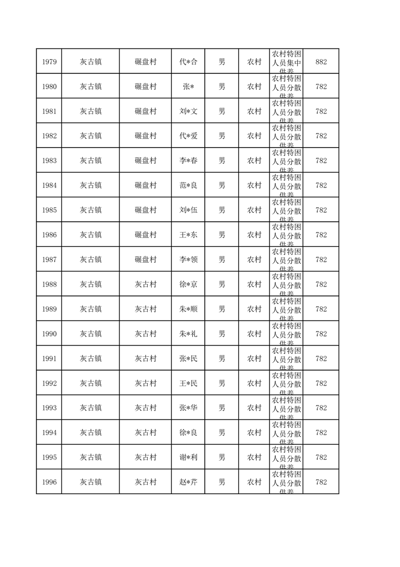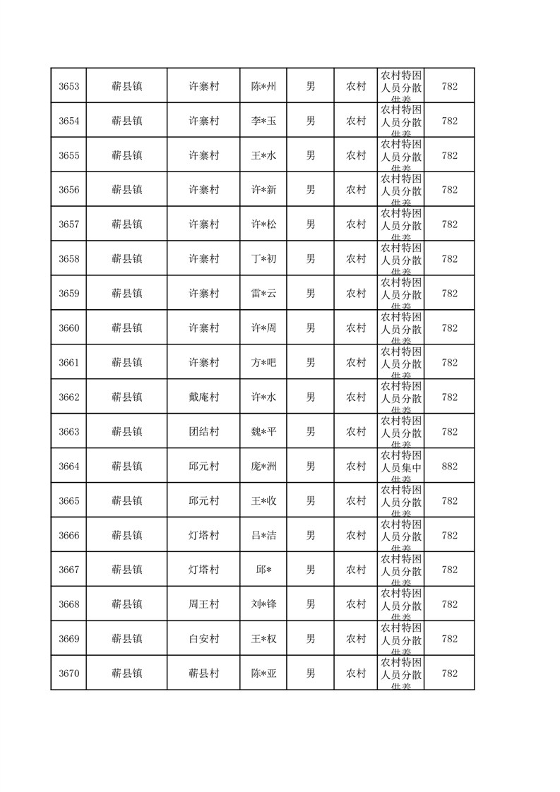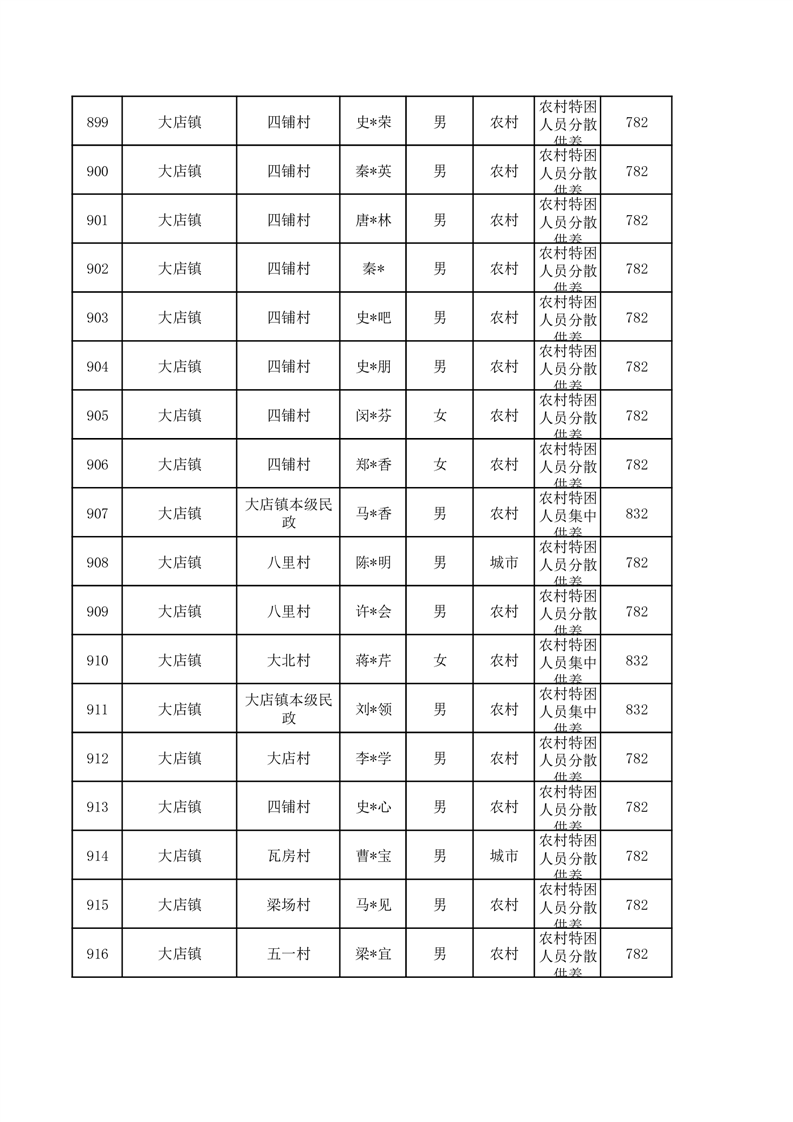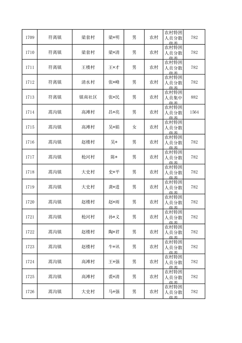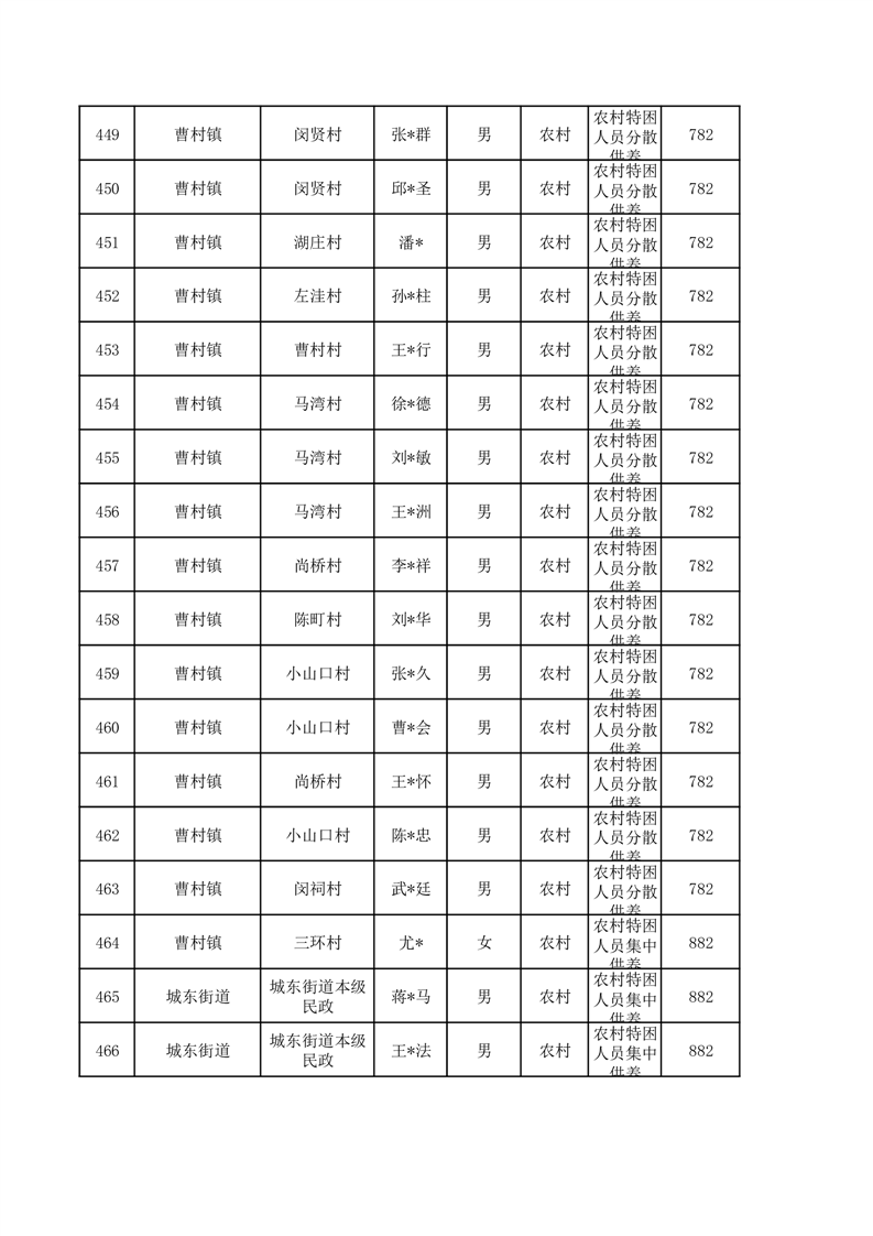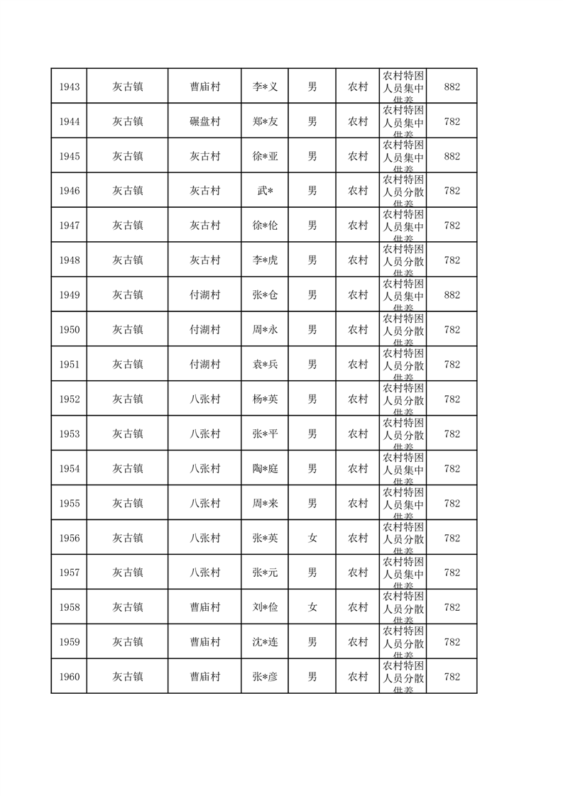 埇桥区2026年1月特困人员名单