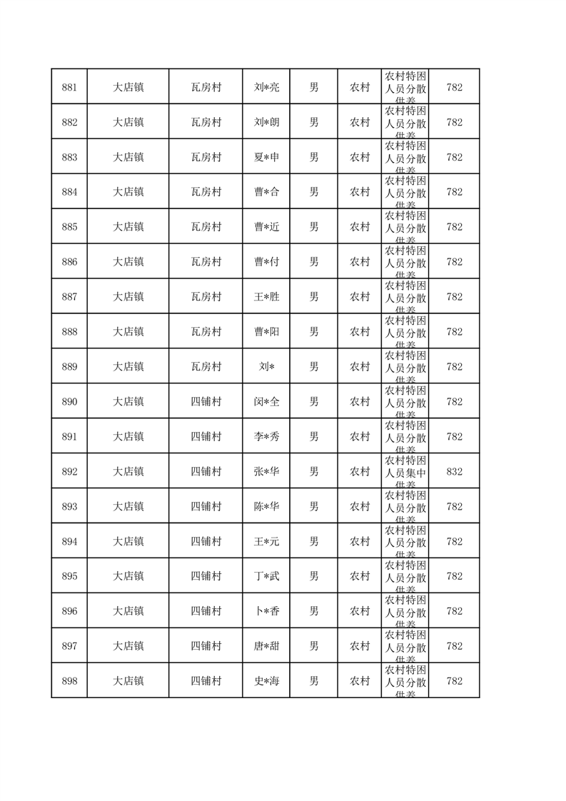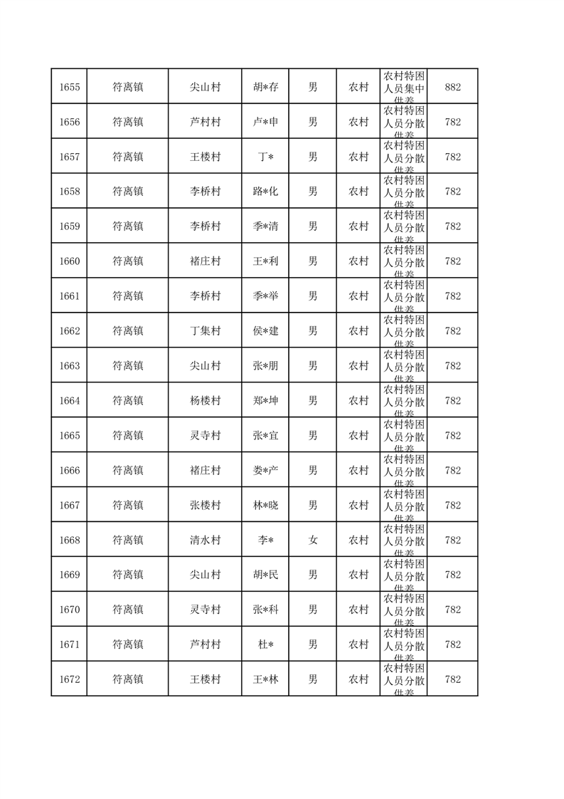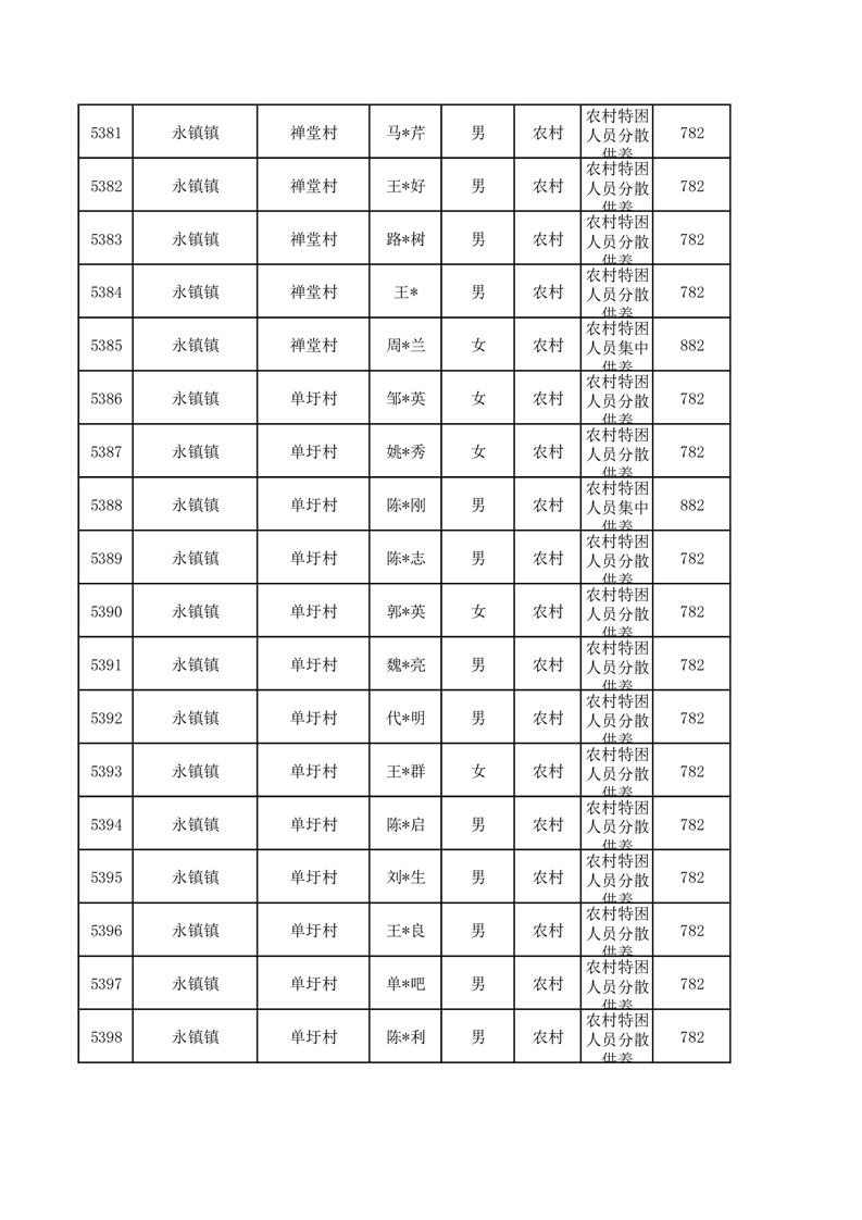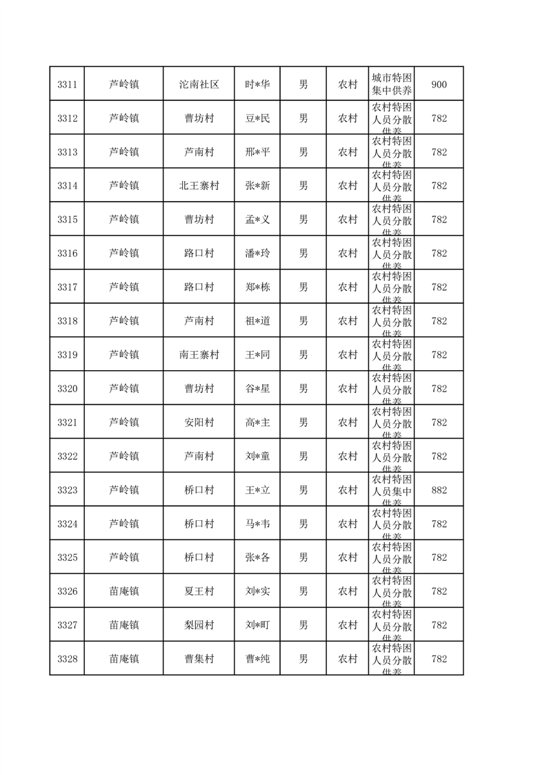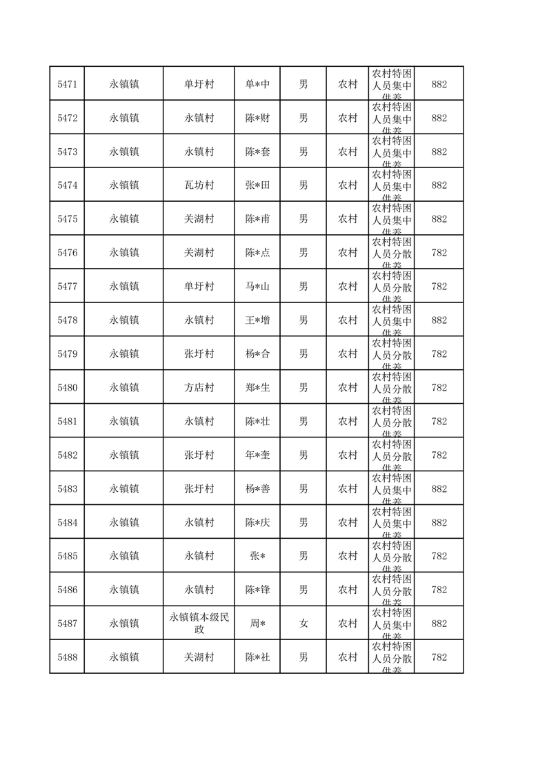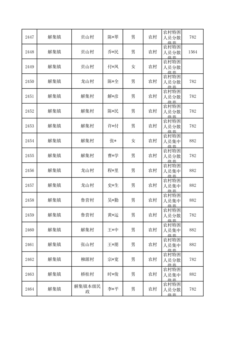 埇桥区2026年1月特困人员名单