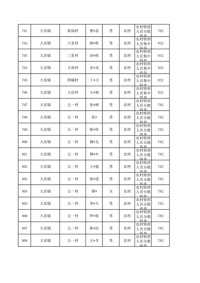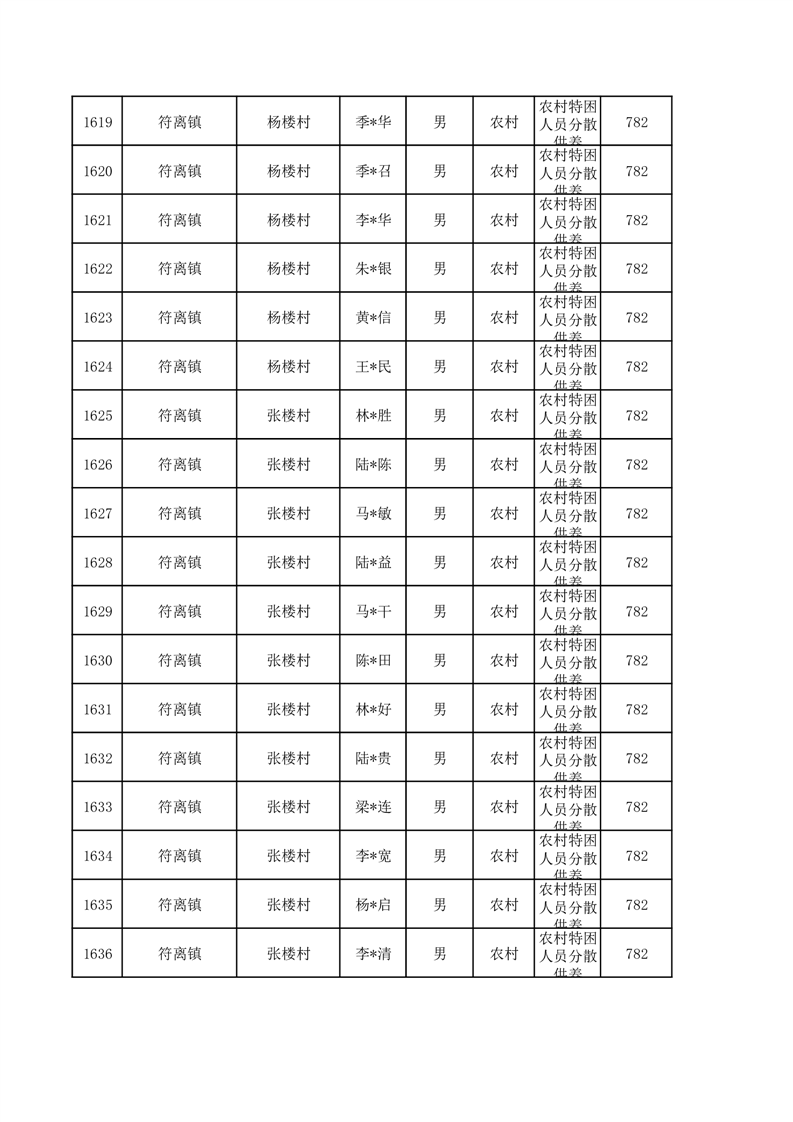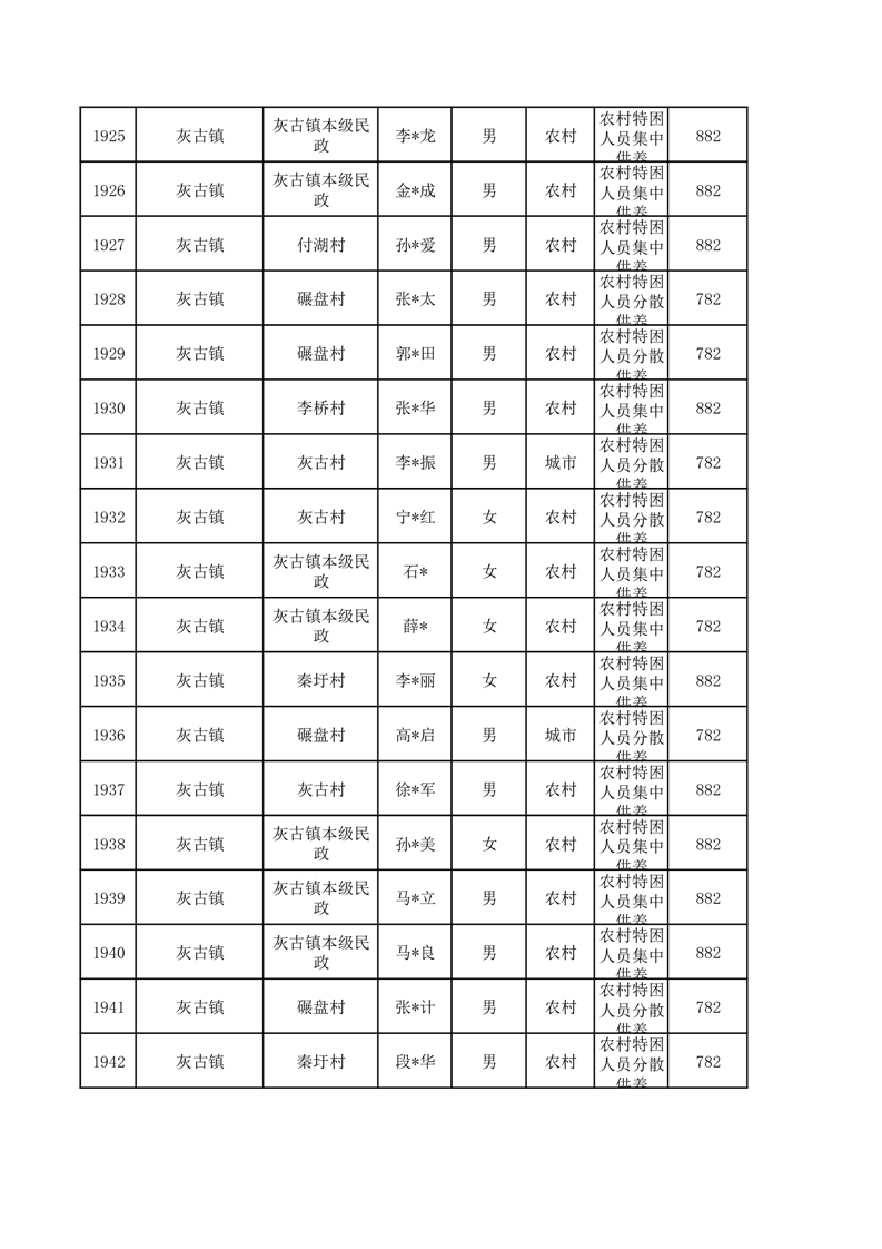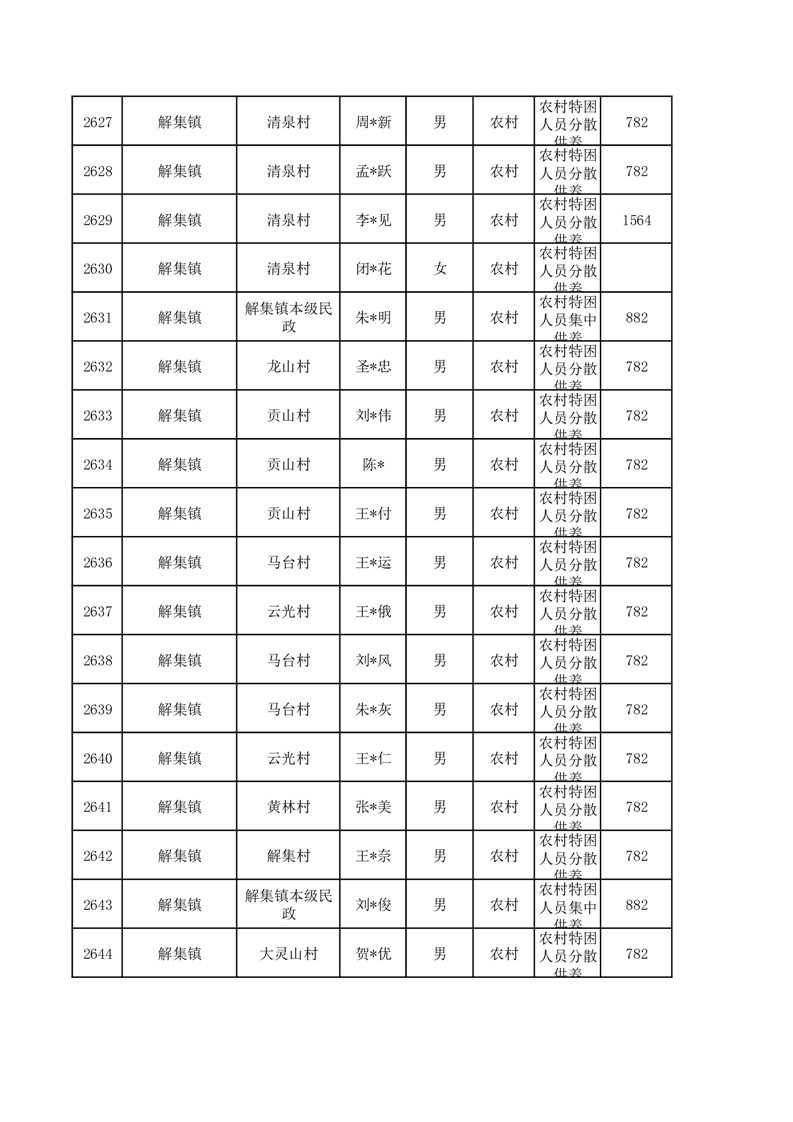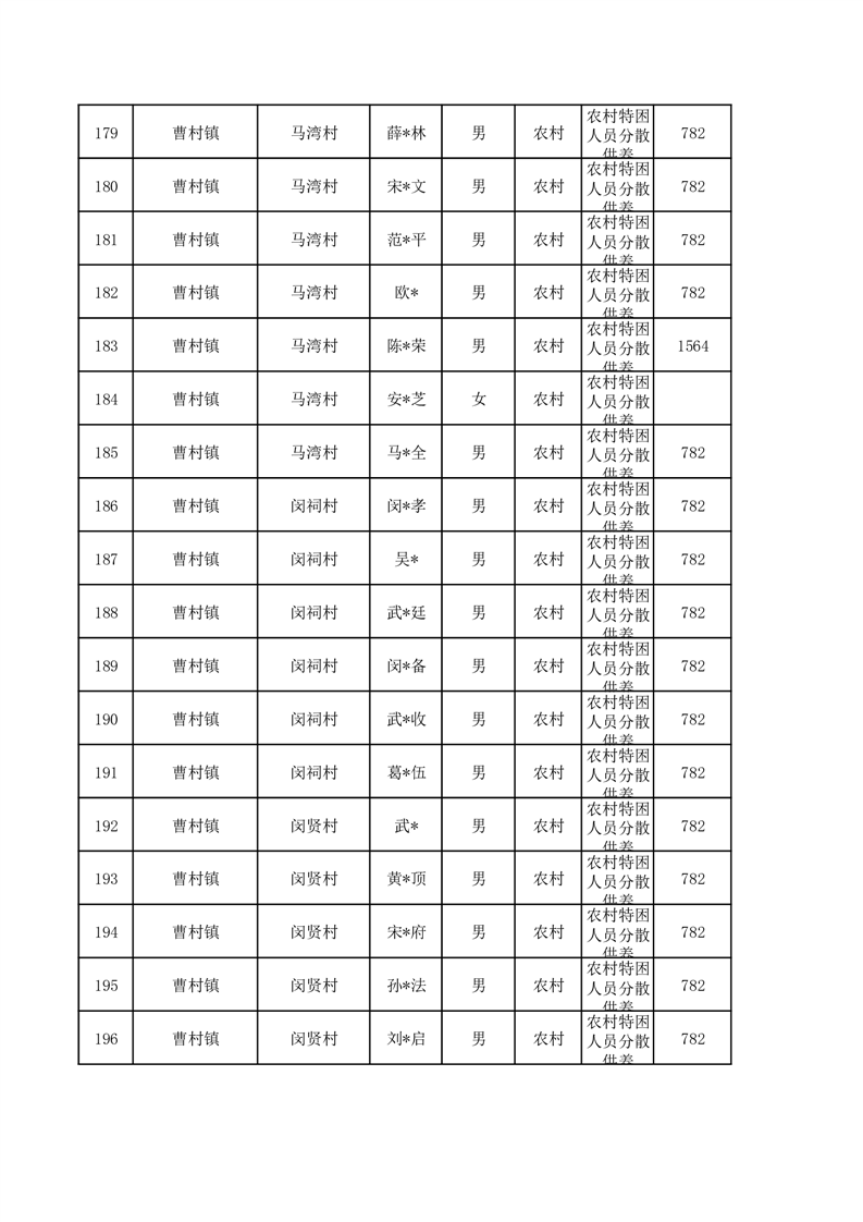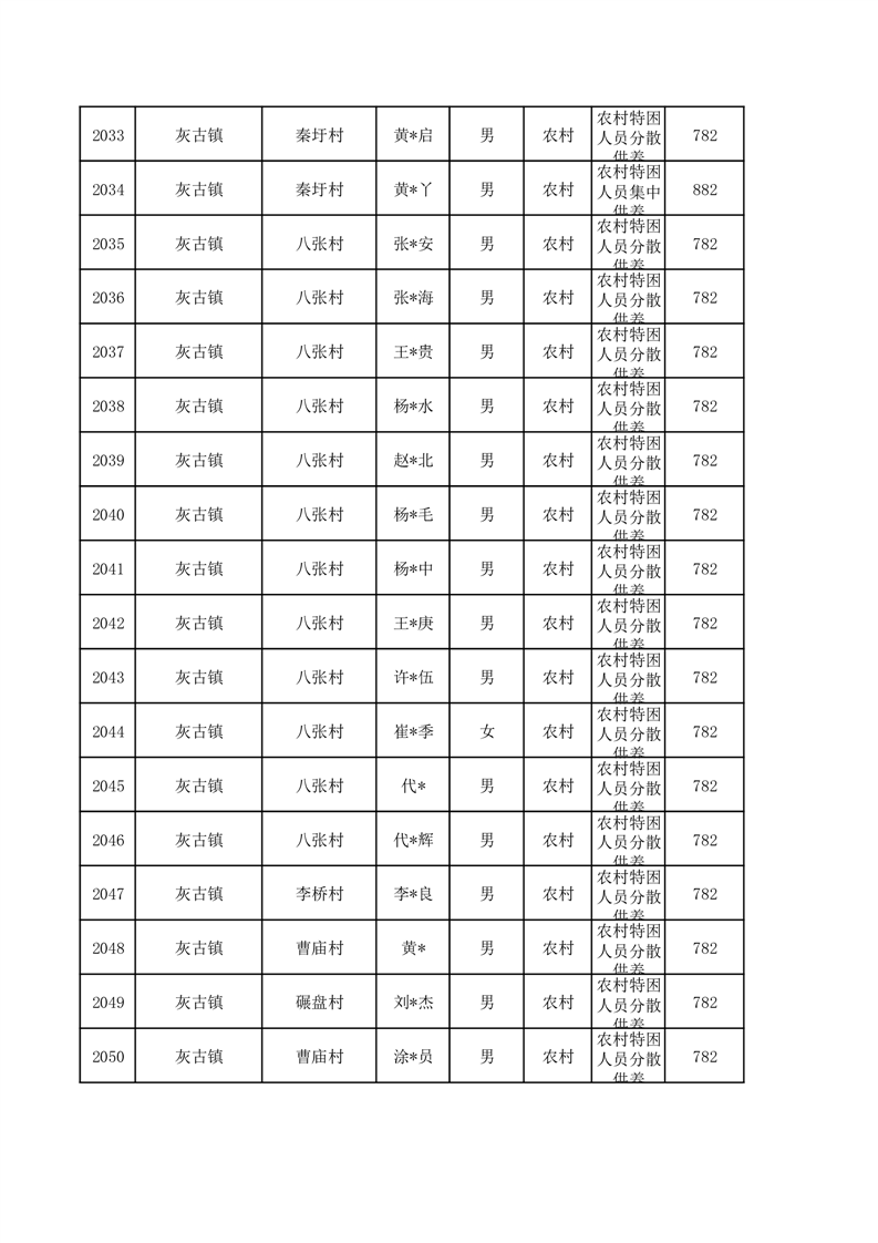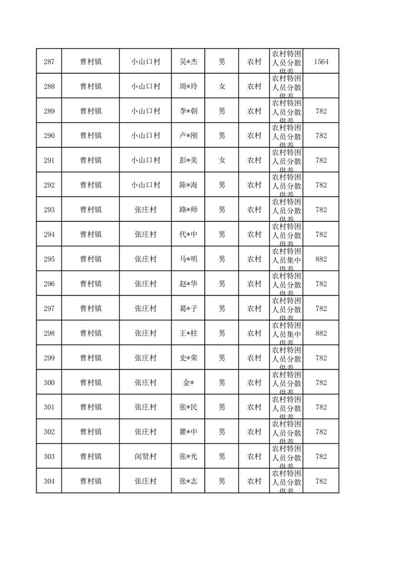埇桥区2026年1月特困人员名单