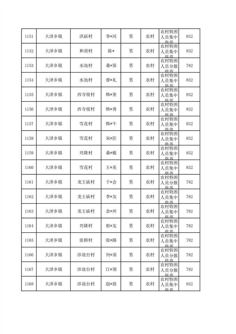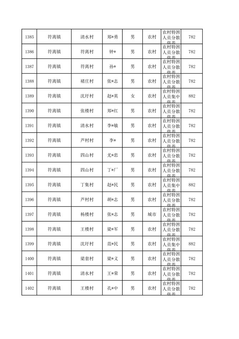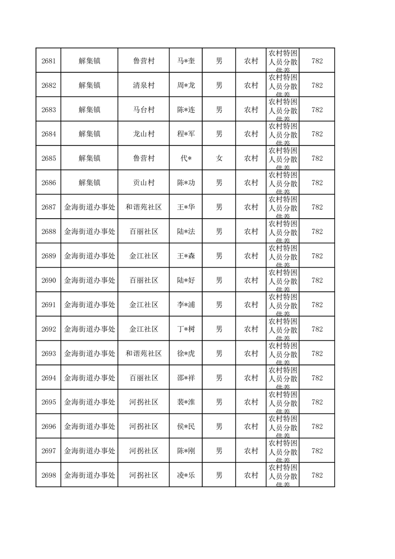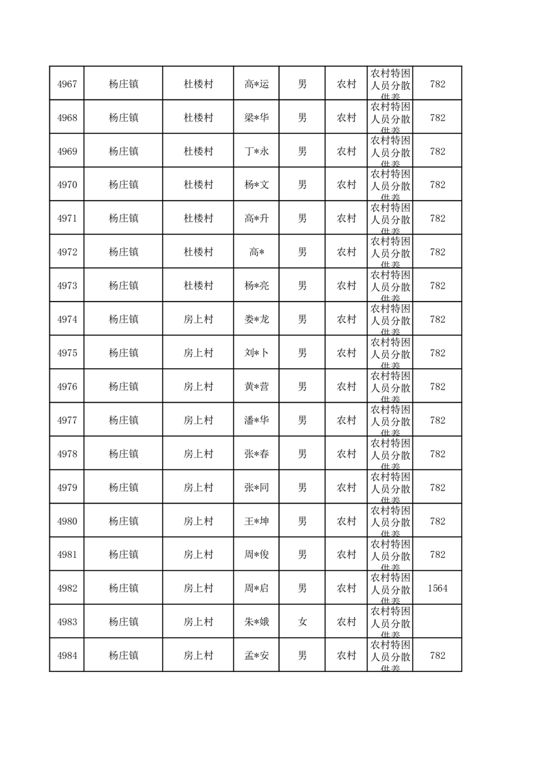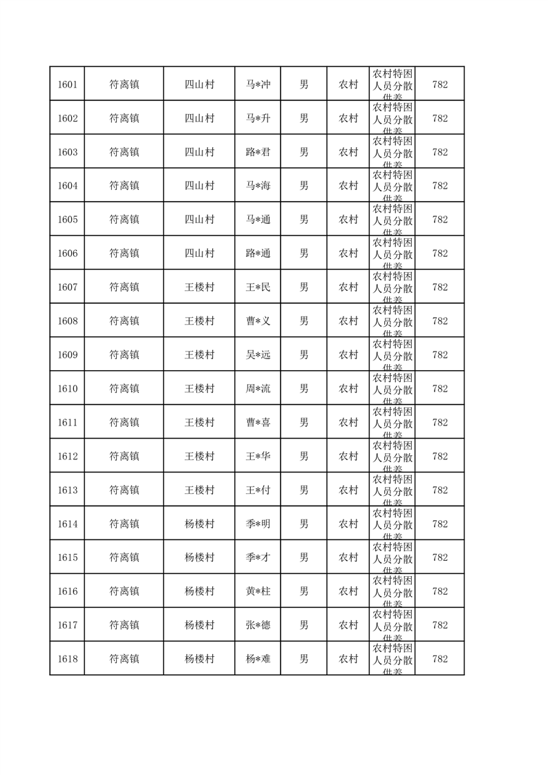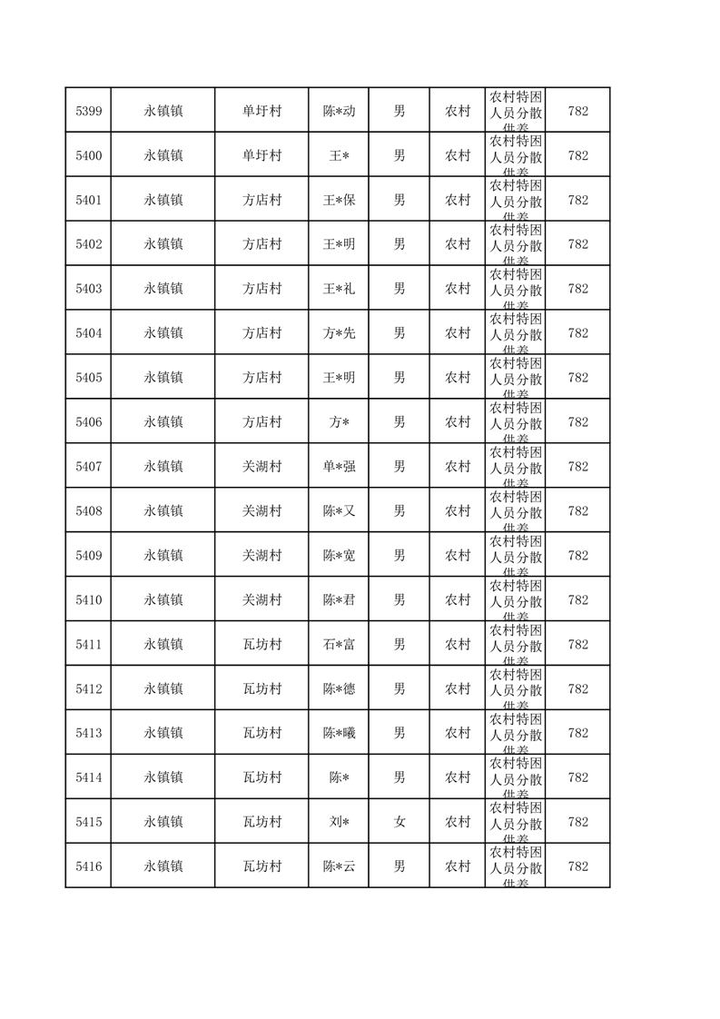 埇桥区2026年1月特困人员名单