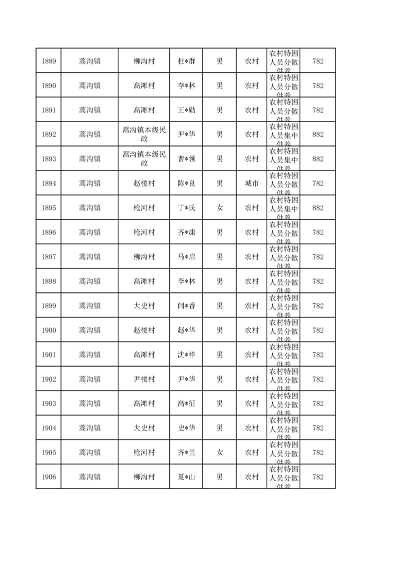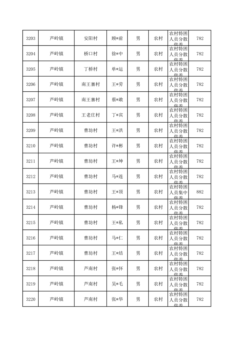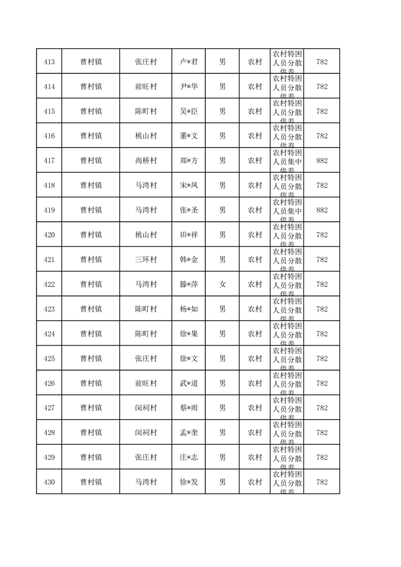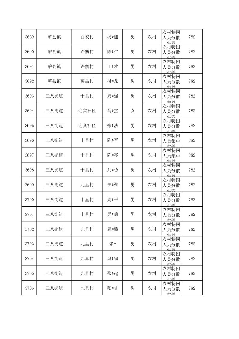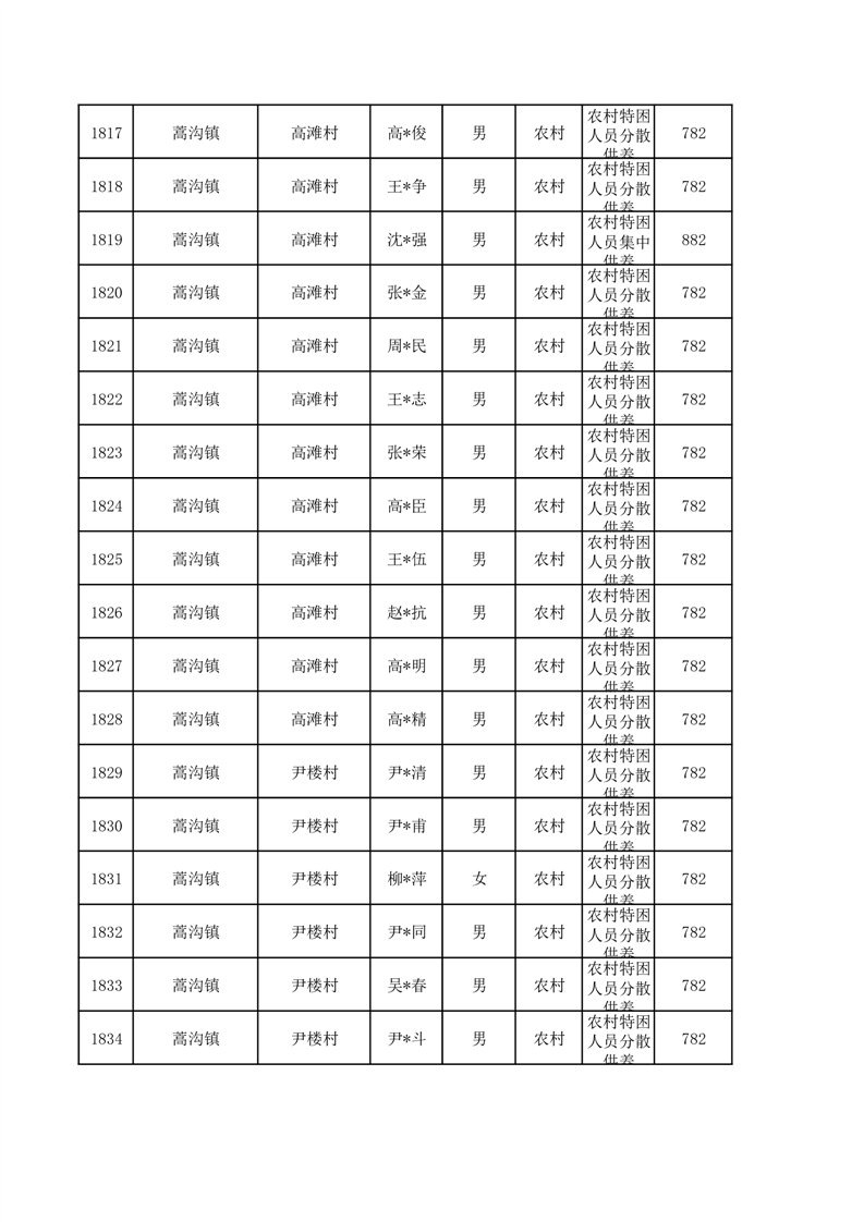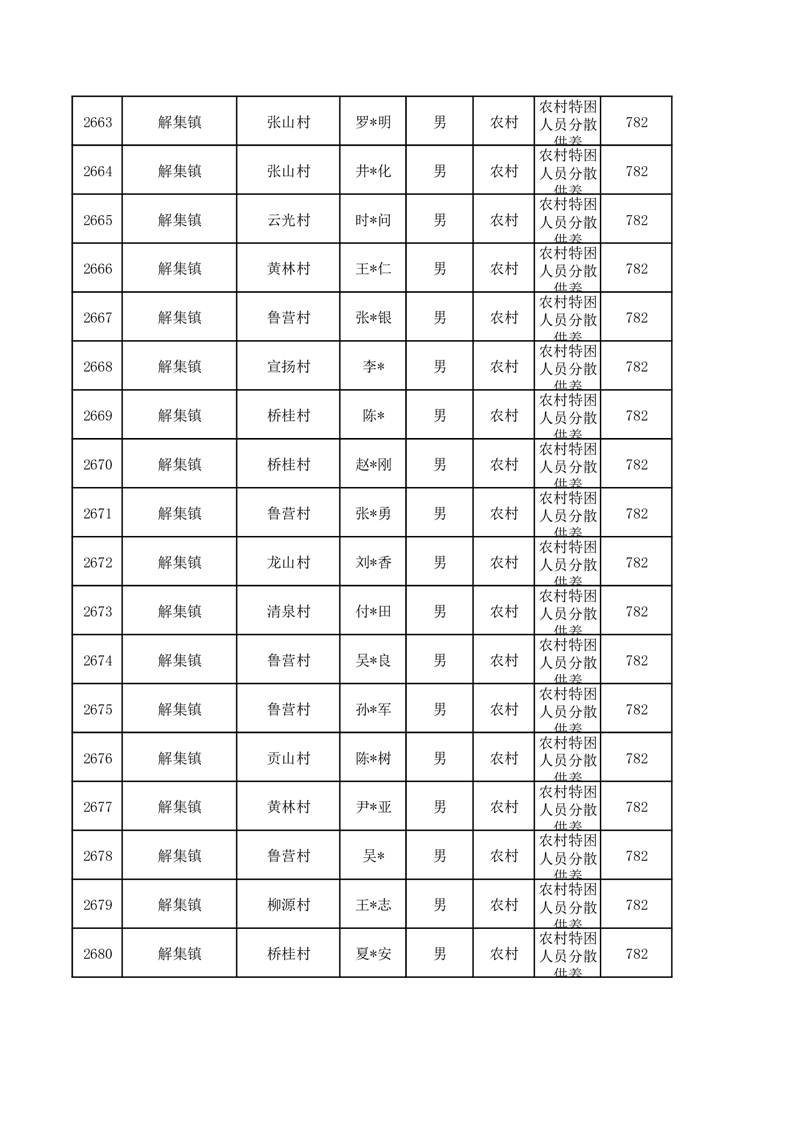 埇桥区2026年1月特困人员名单