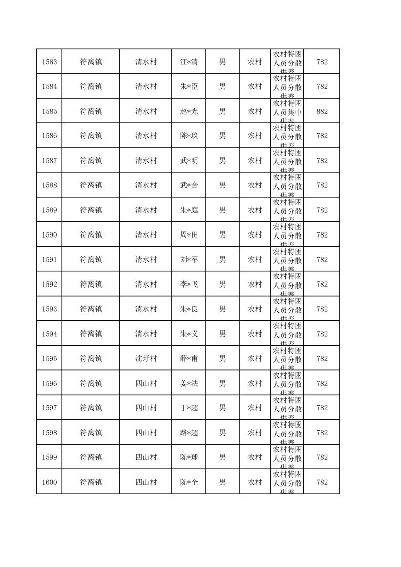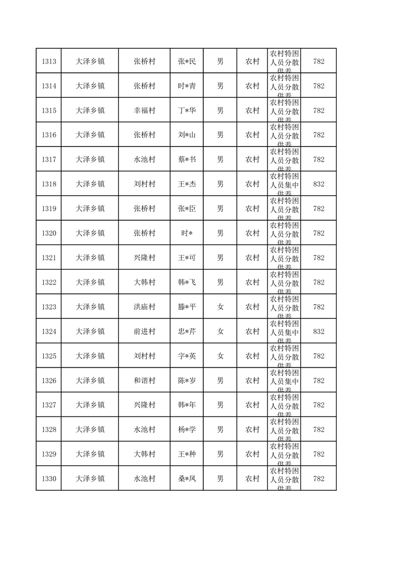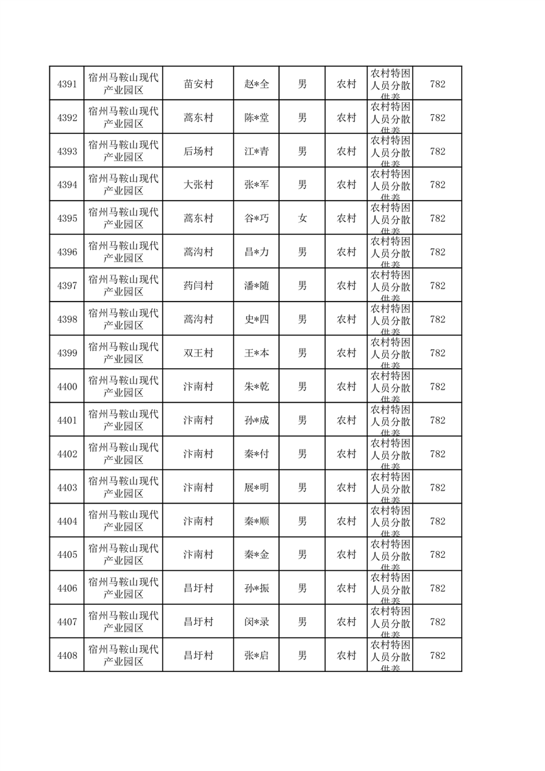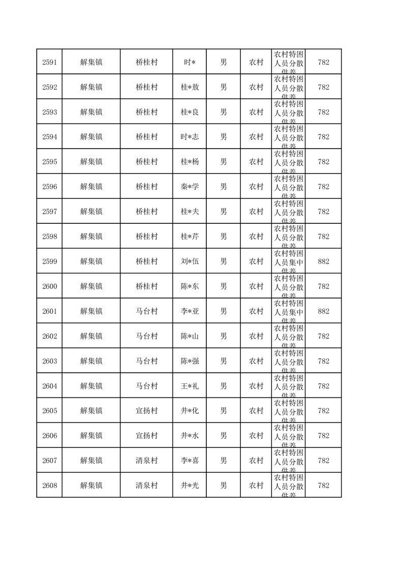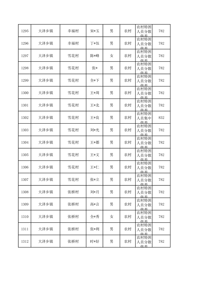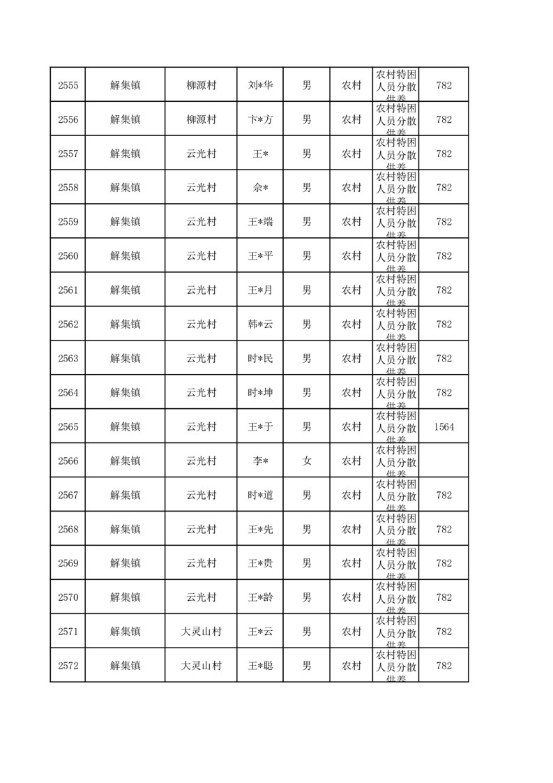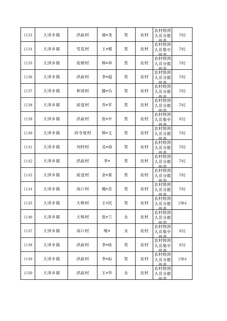 埇桥区2026年1月特困人员名单