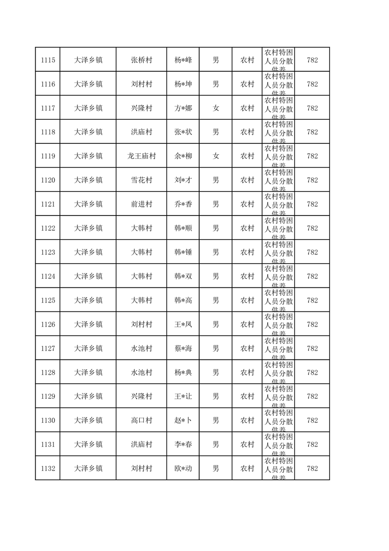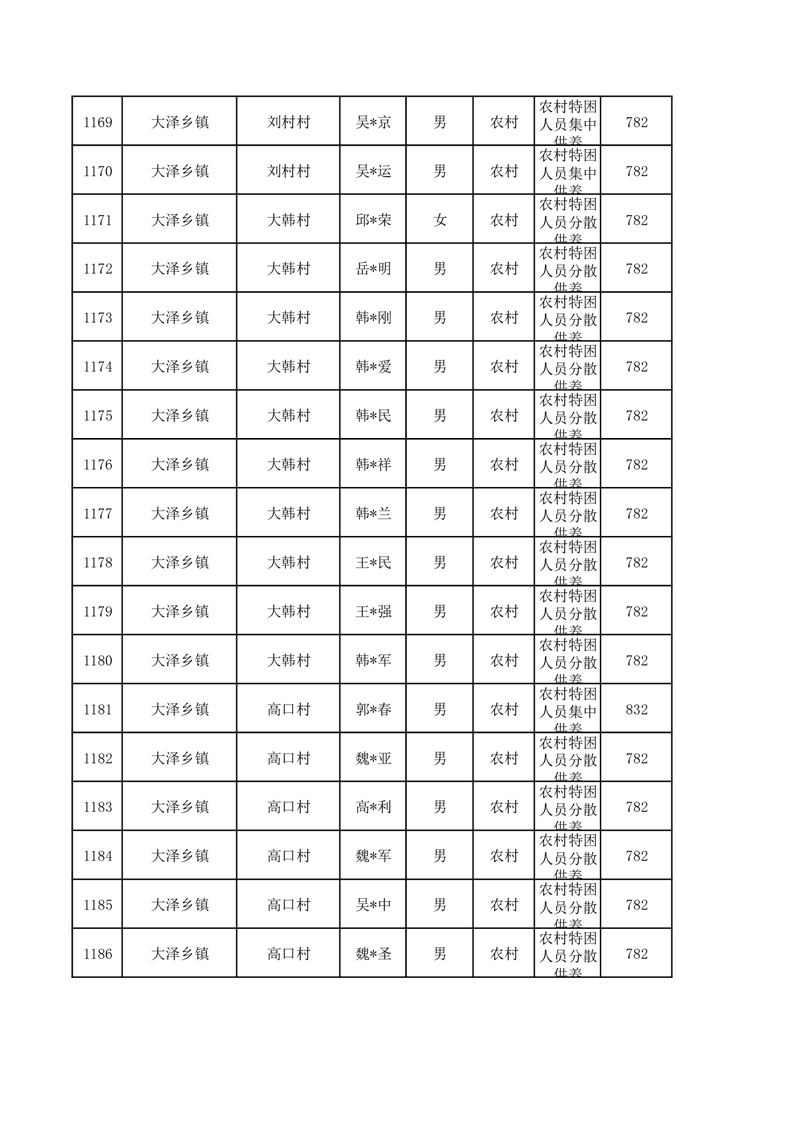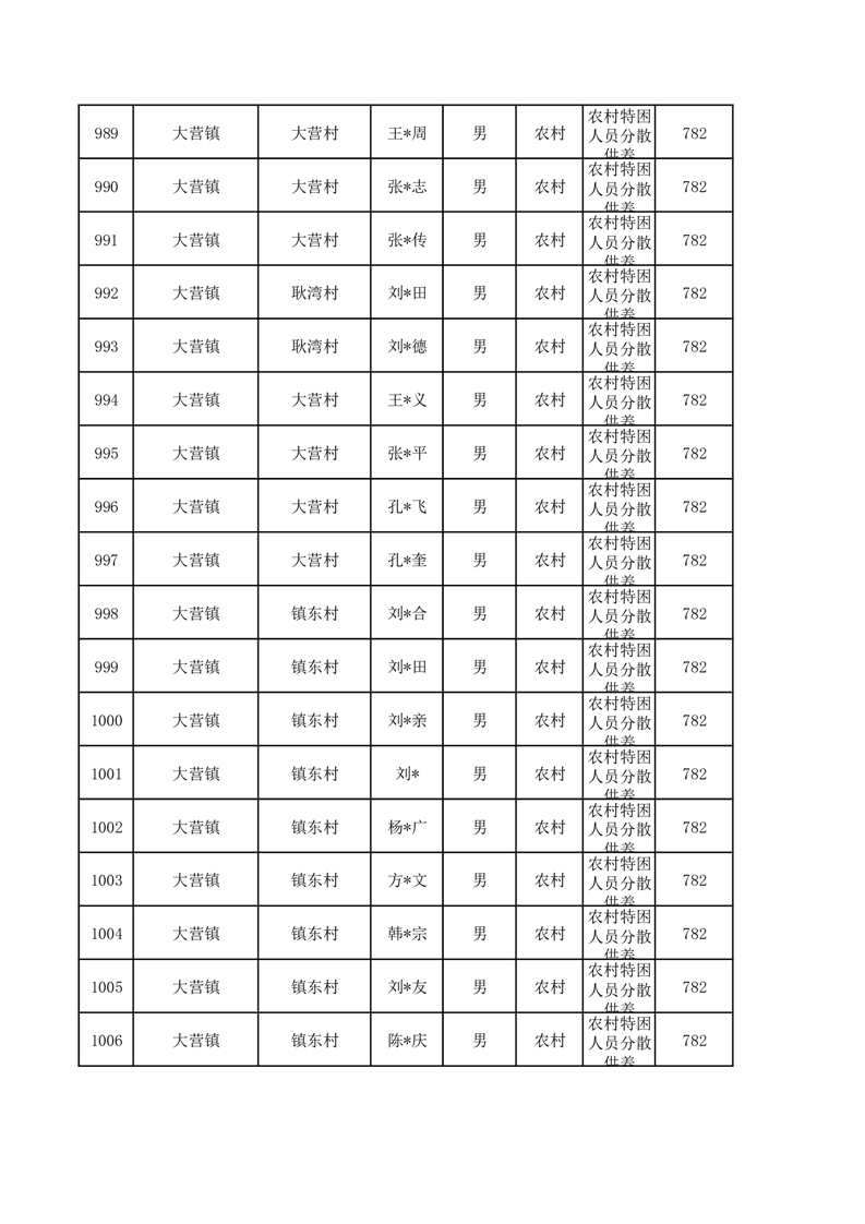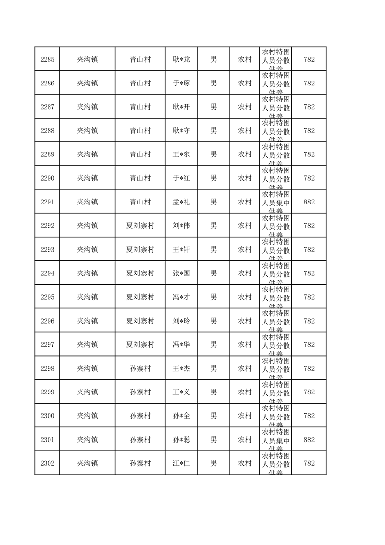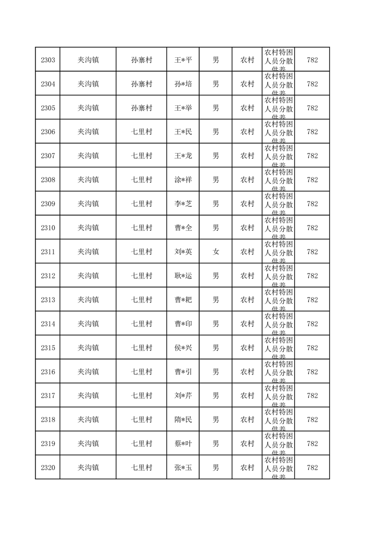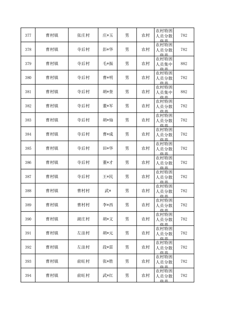 埇桥区2026年1月特困人员名单