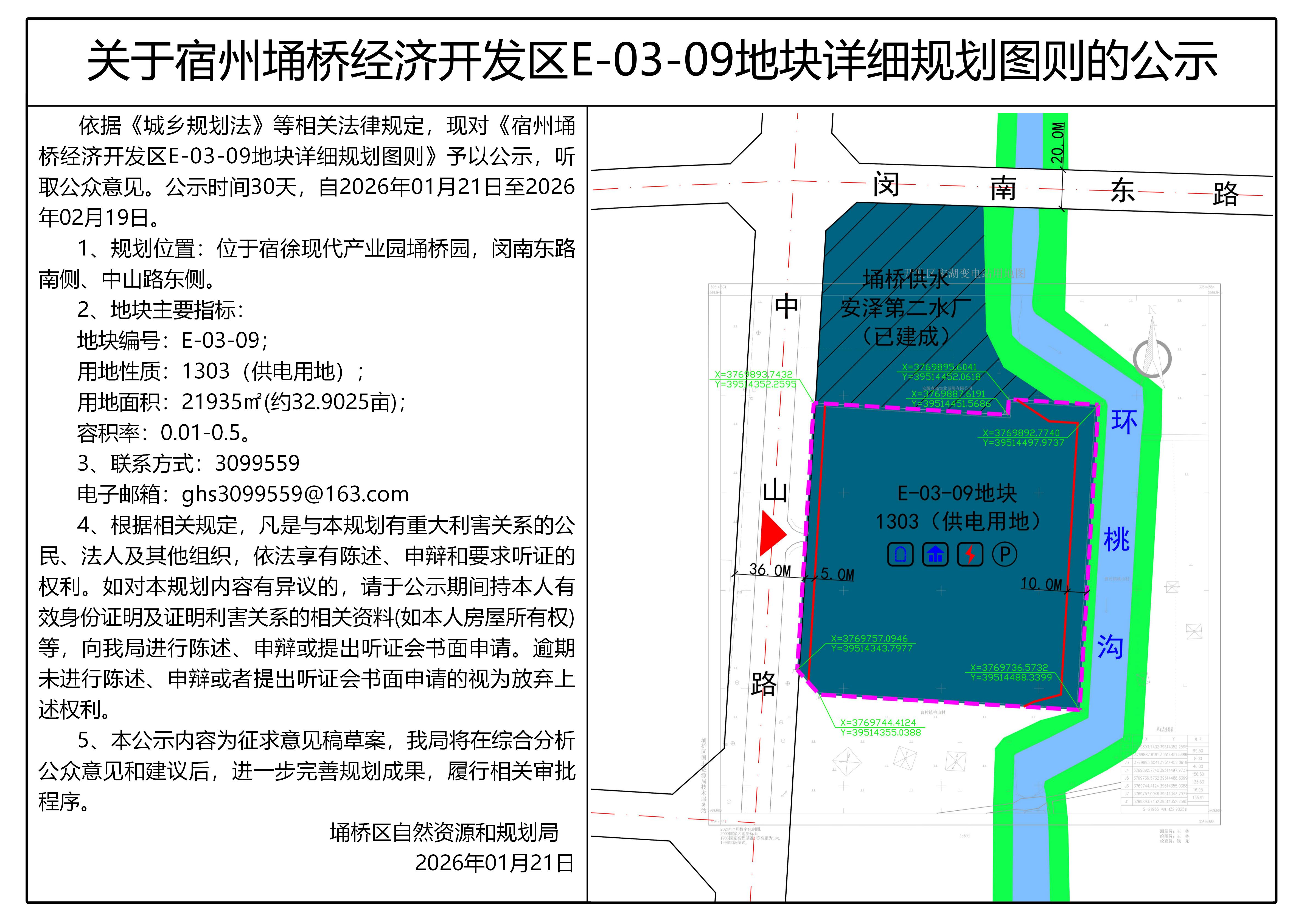 关于宿州埇桥经济开发区E-03-09地块详细规划图则的公示