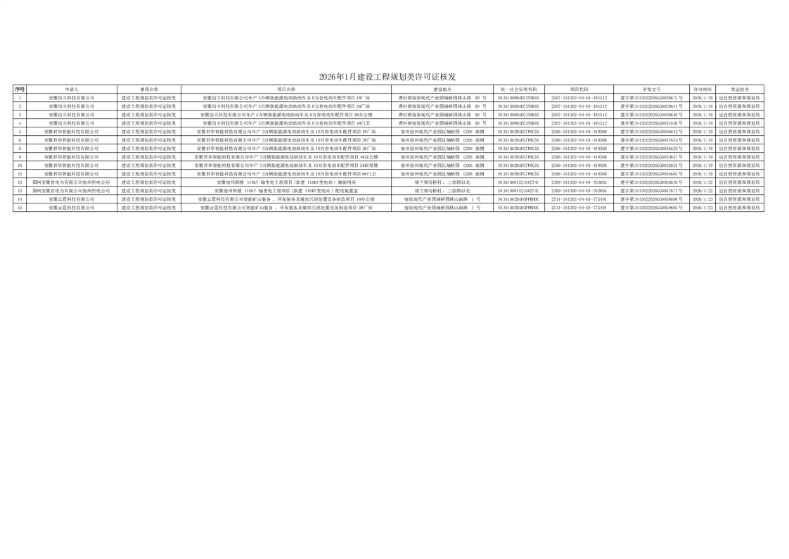 2026年1月建设工程规划类许可证核发