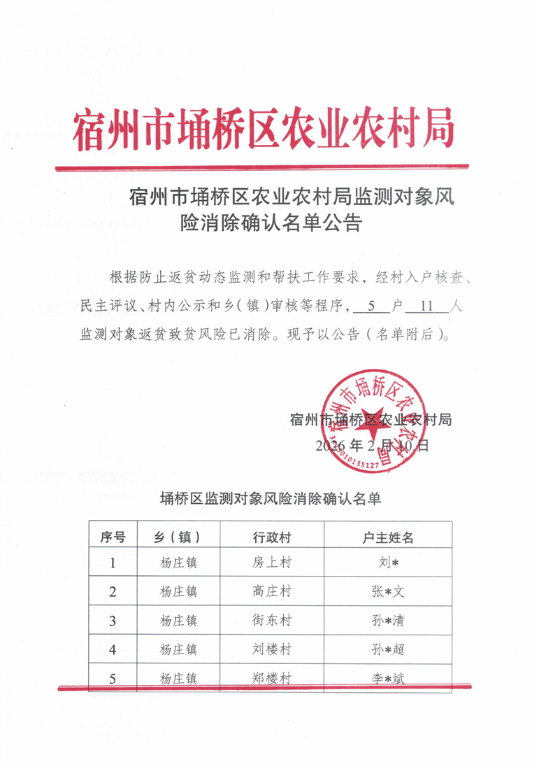 宿州市埇桥区风险消除确认名单公告