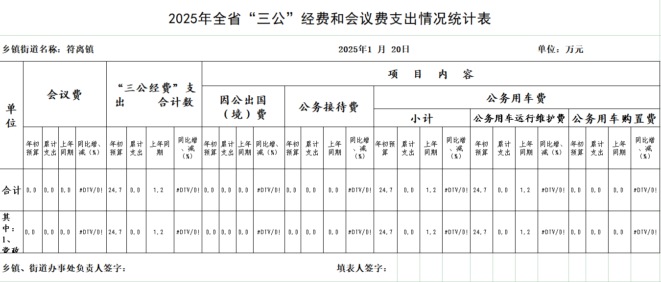 符离镇2025年1月份“三公”经费