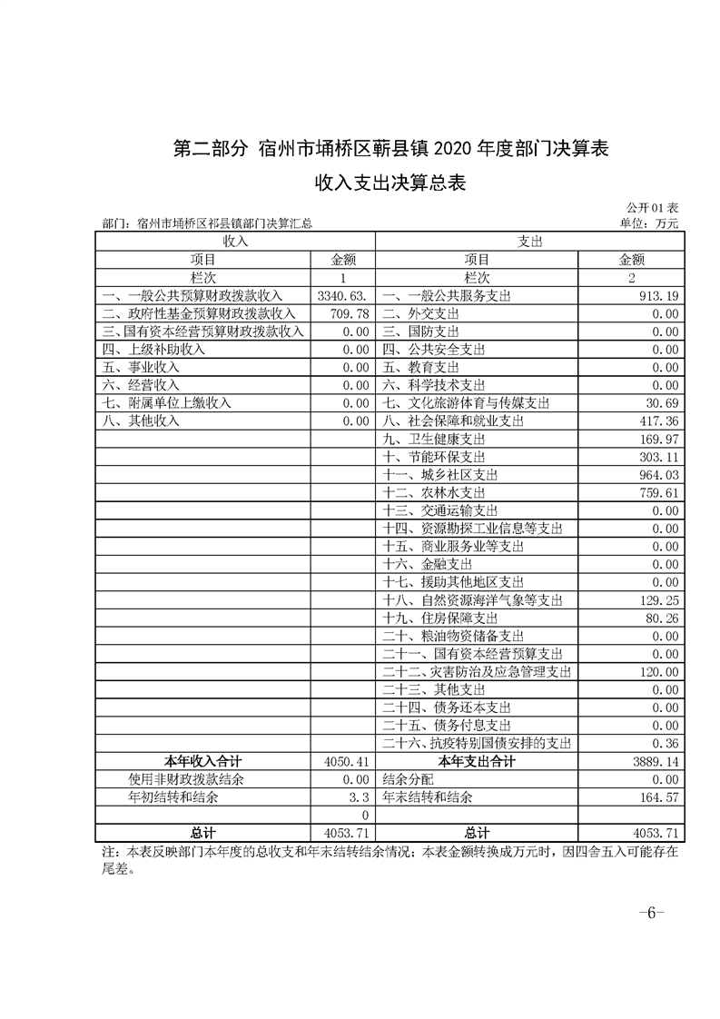【2020年部门决算】蕲县镇2020年度部门决算