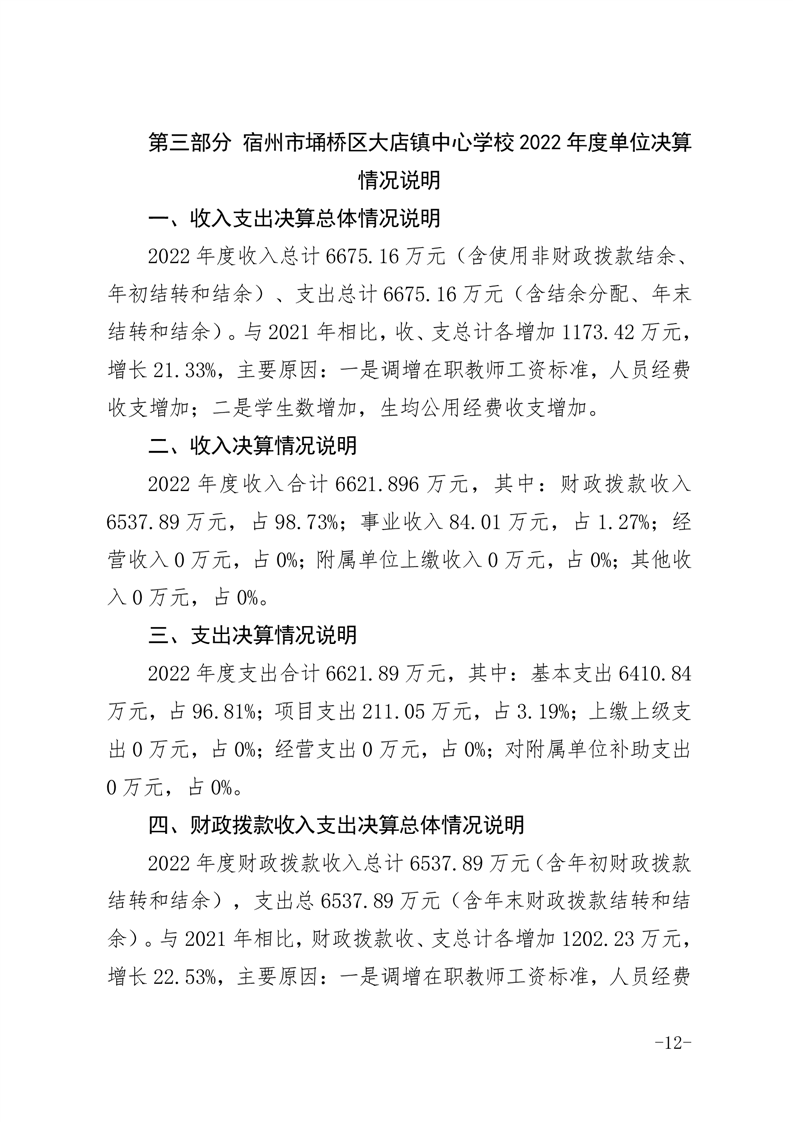 宿州市埇桥区大店镇中心学校2022年度单位决算