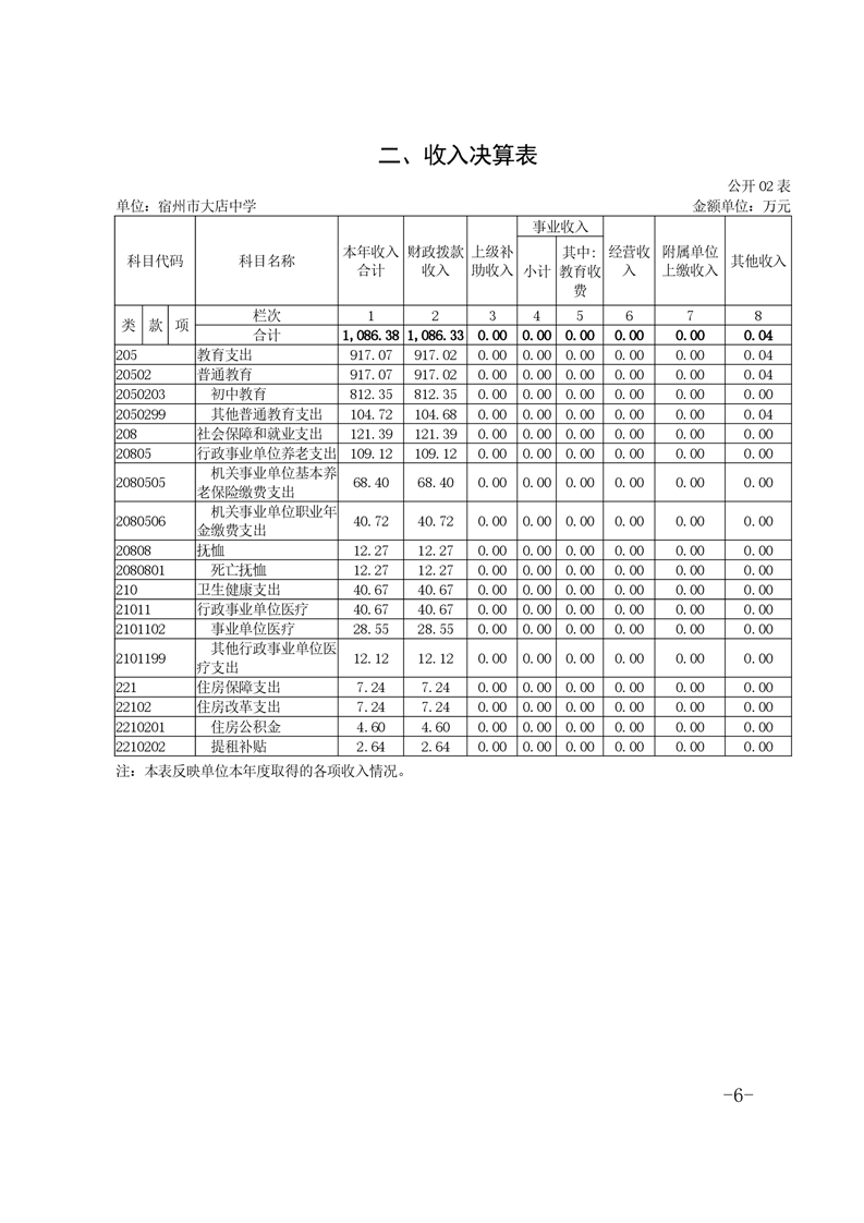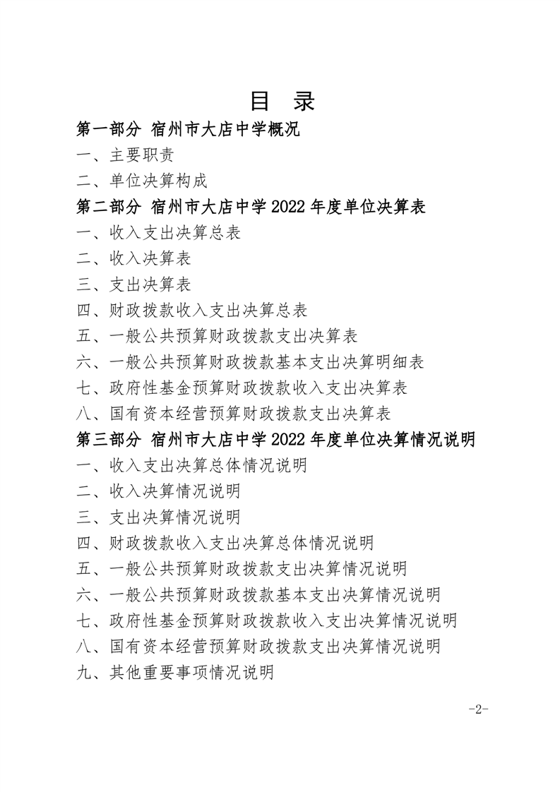 宿州市大店中学2022年度单位决算