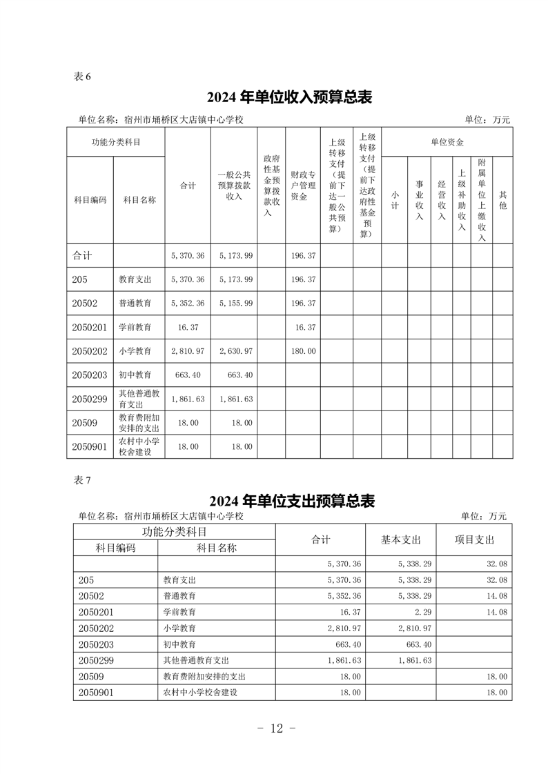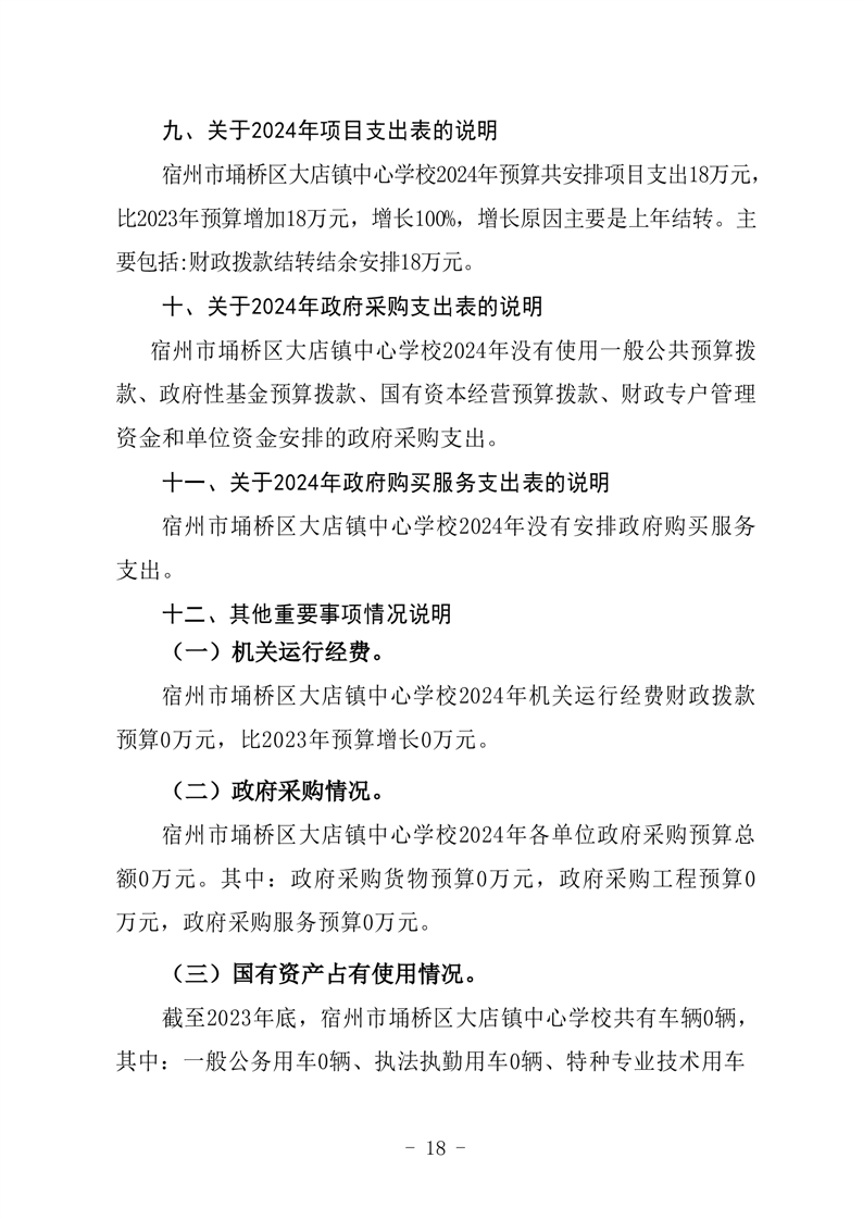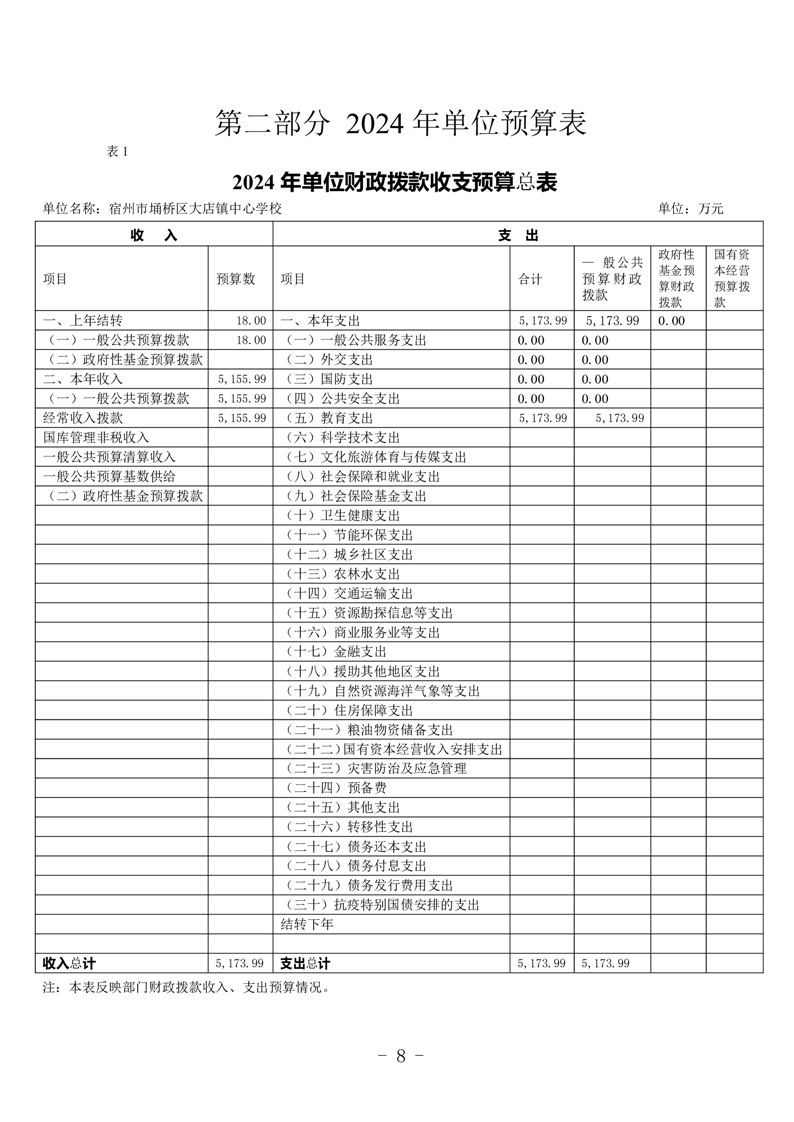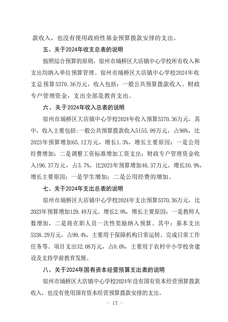宿州市埇桥区大店镇中心学校2024年单位预算公开