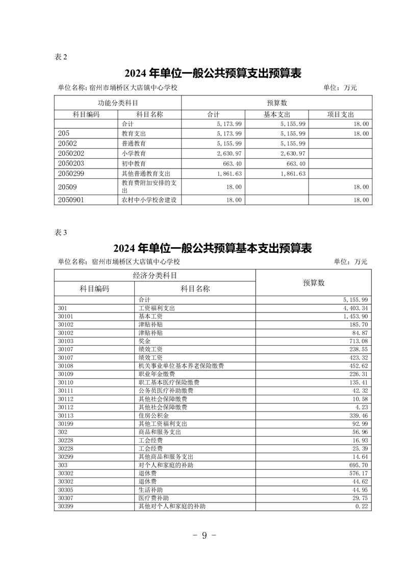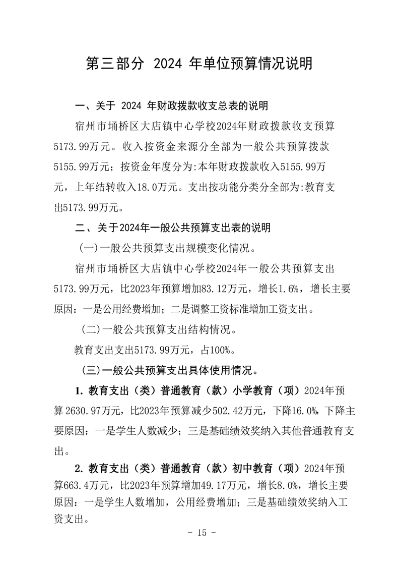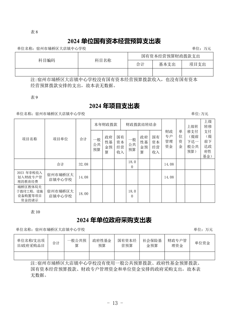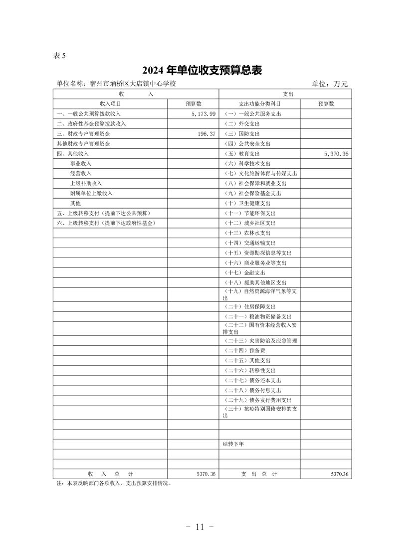 宿州市埇桥区大店镇中心学校2024年单位预算公开