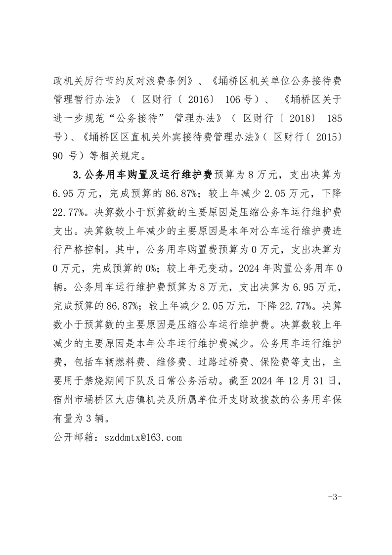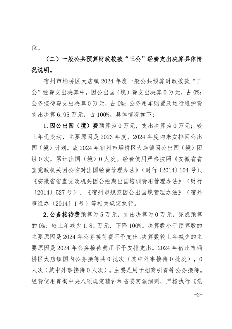 宿州市埇桥区大店镇2024年度一般公共预算财政拨款“三公”经费支出决算