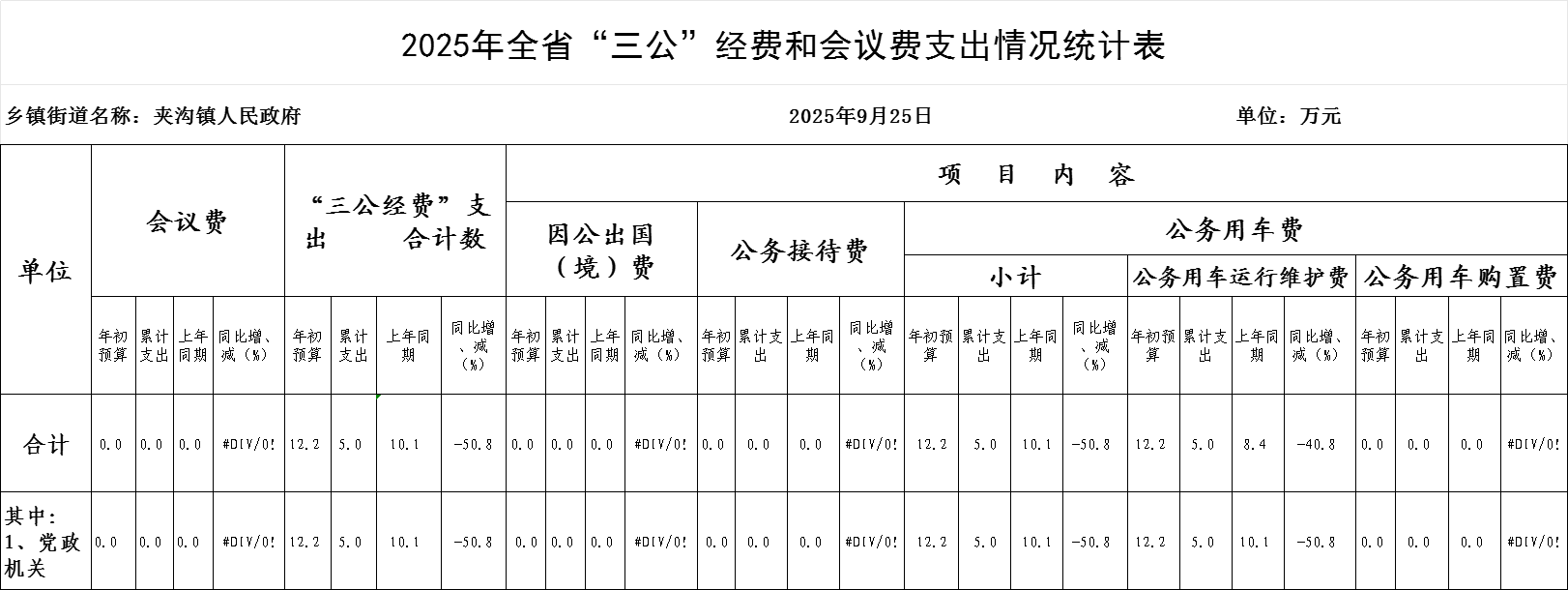2025年9月夹沟镇“三公”经费全口径支出情况统计表