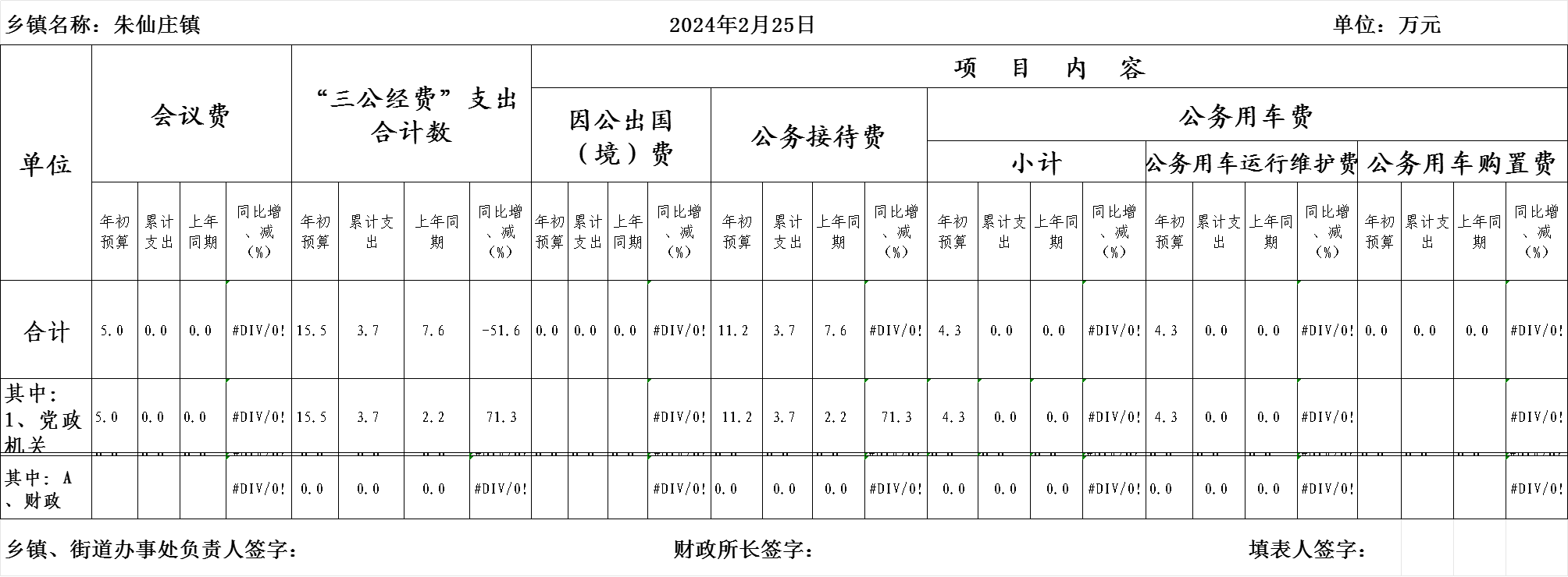 朱仙庄镇2024年2月份“三公经费”和会议费支出情况统计表2