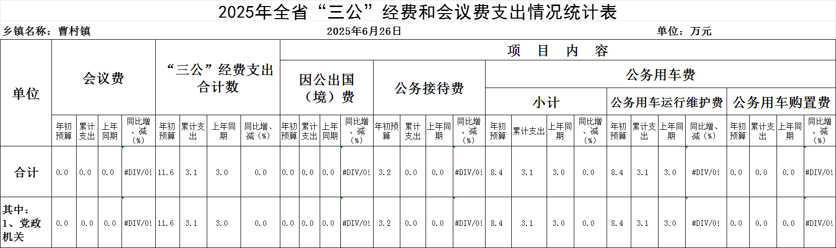 曹村镇2025年6月“三公”经费统计表