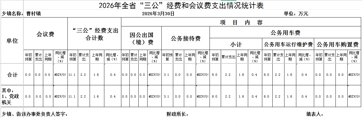 曹村镇2026年3月“三公”经费统计表