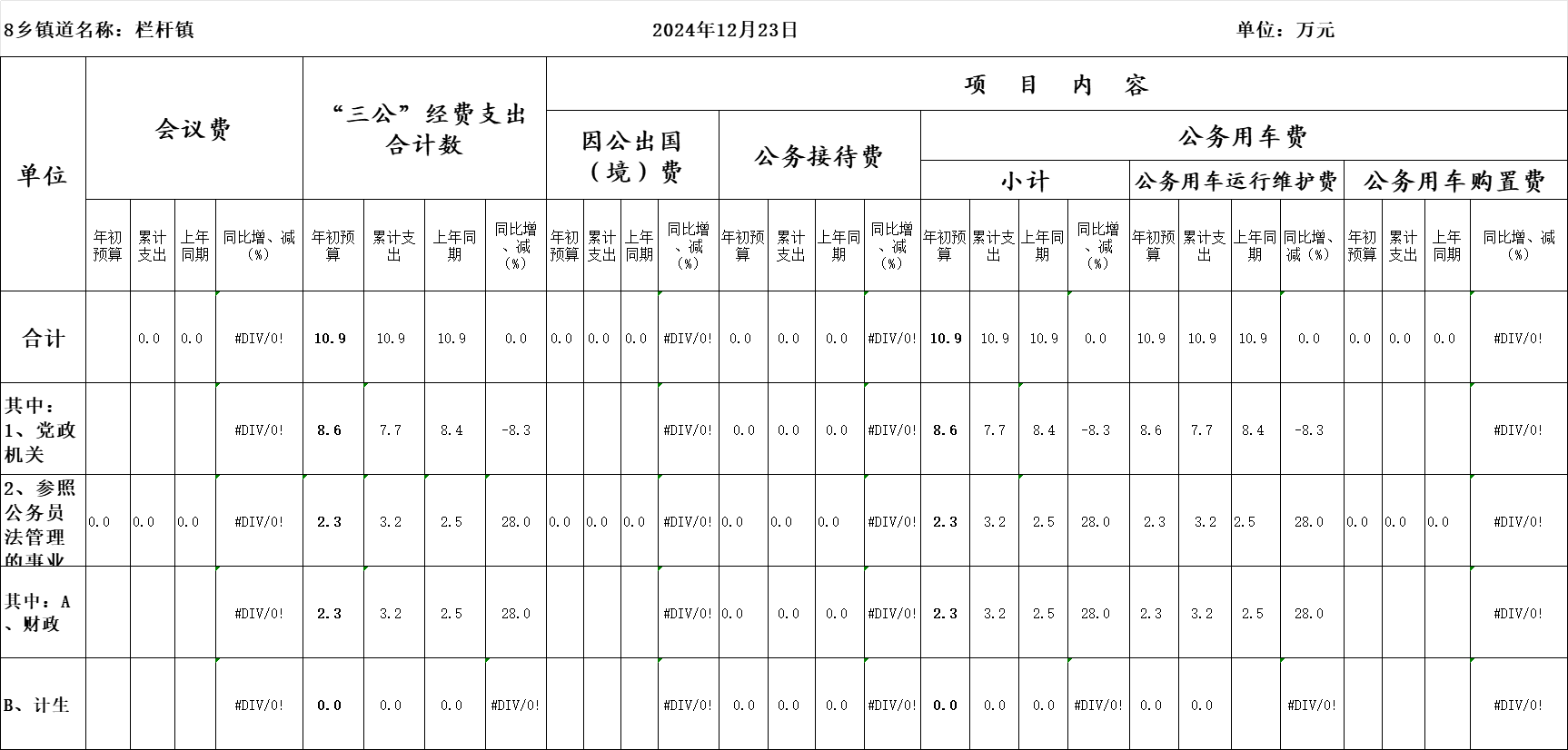 埇桥区栏杆镇2024年12月份“三公”经费和会议费支出情况统计表