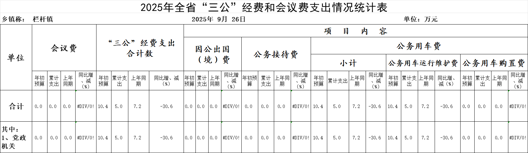 埇桥区栏杆镇2025年9月份“三公”经费和会议费支出情况说明