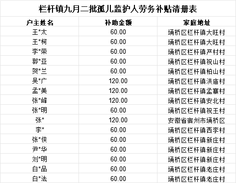 【孤儿补助】栏杆镇2025年9月发放孤儿监护人劳务补贴情况