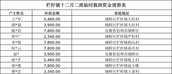【资金发放】栏杆镇2025年12月临时救助资金情况