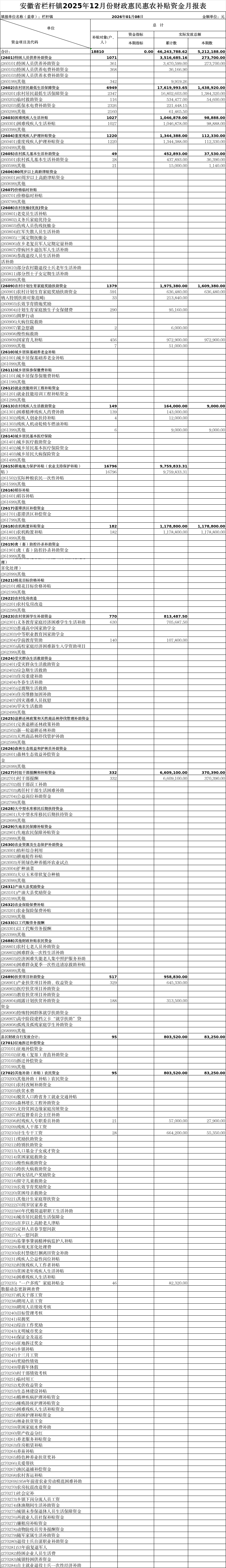 栏杆镇2025年12月份财政专项资金分配结果