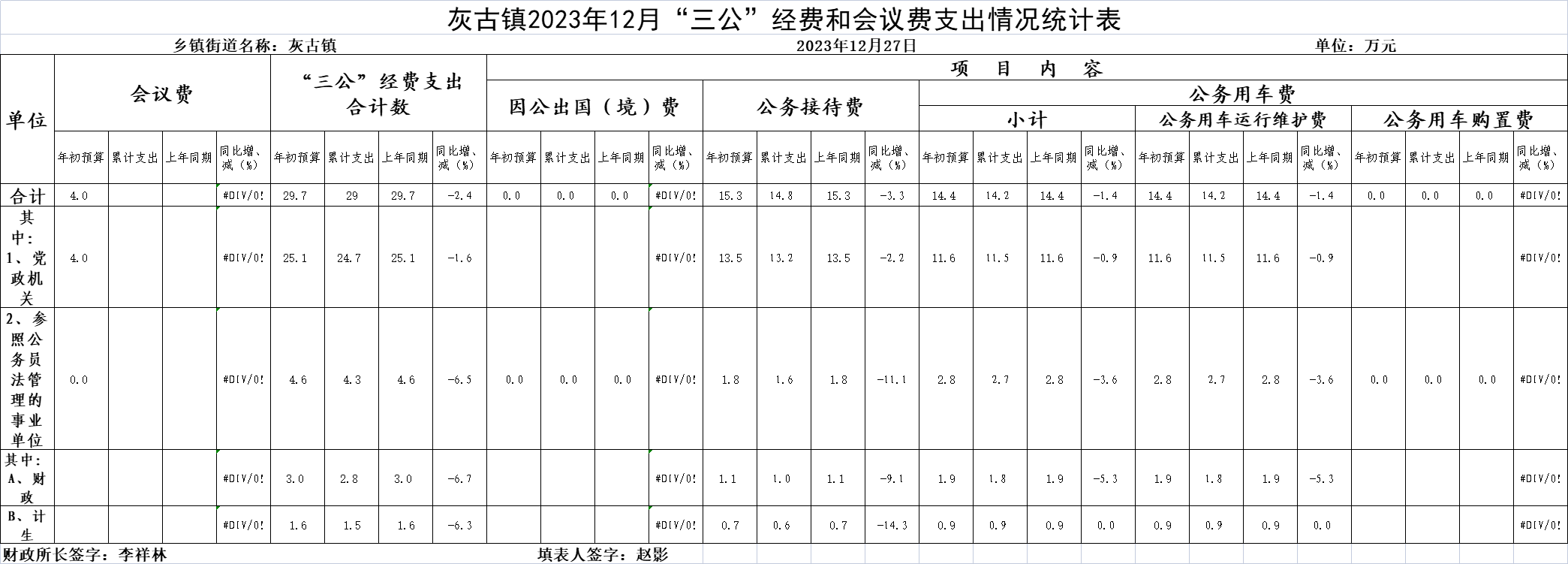 灰古镇2023年12月“三公”经费和会议费支出情况统计表