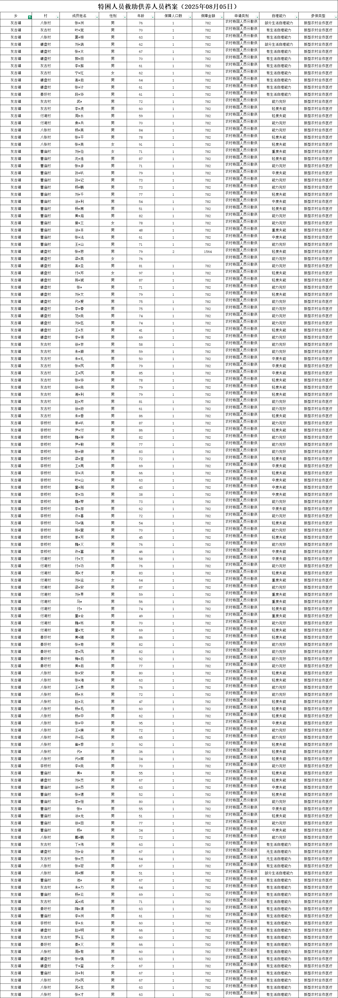 【审批信息】灰古镇2025年8月份特困供养人员花名册
