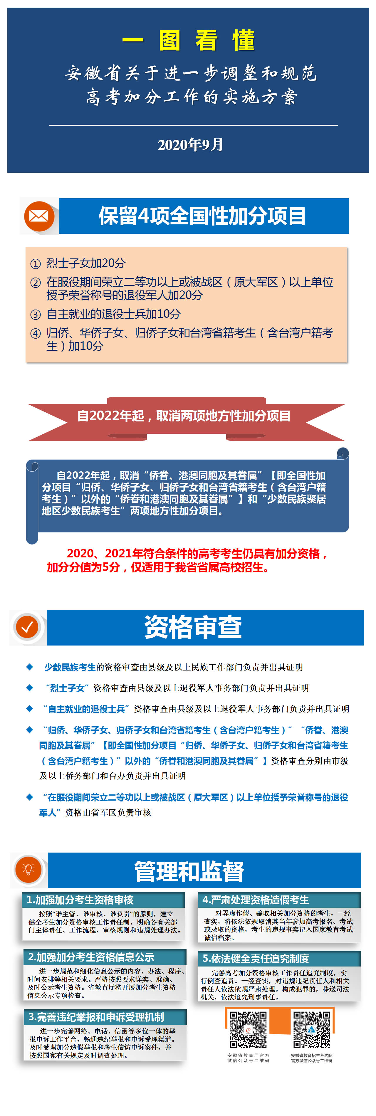 【上级政策】图解:《安徽省关于进一步调整和规范高考加分工作的实施方案》