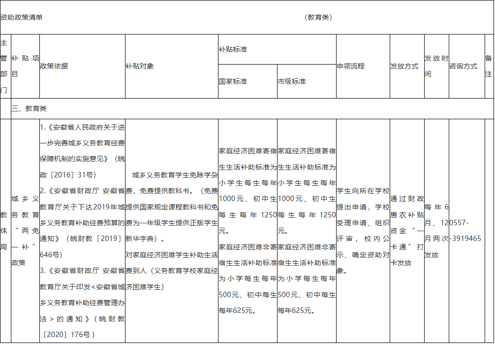【服务指南】宿州市埇桥区统一城乡义务教育“两免一补”政策