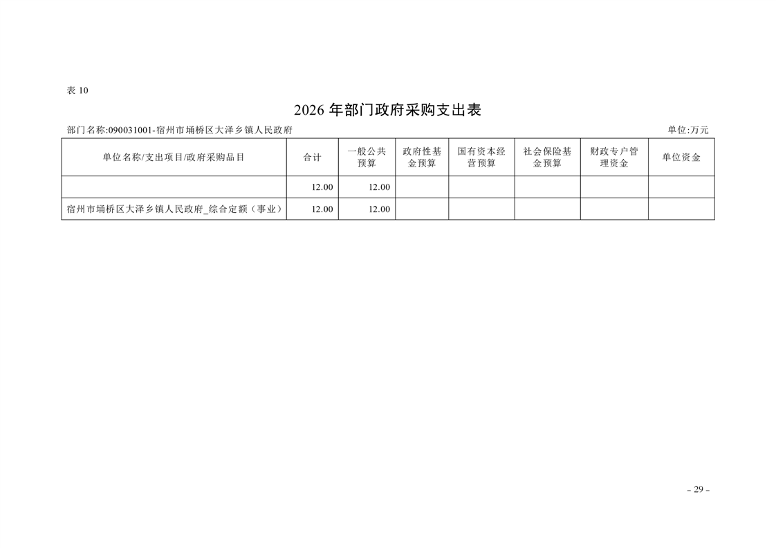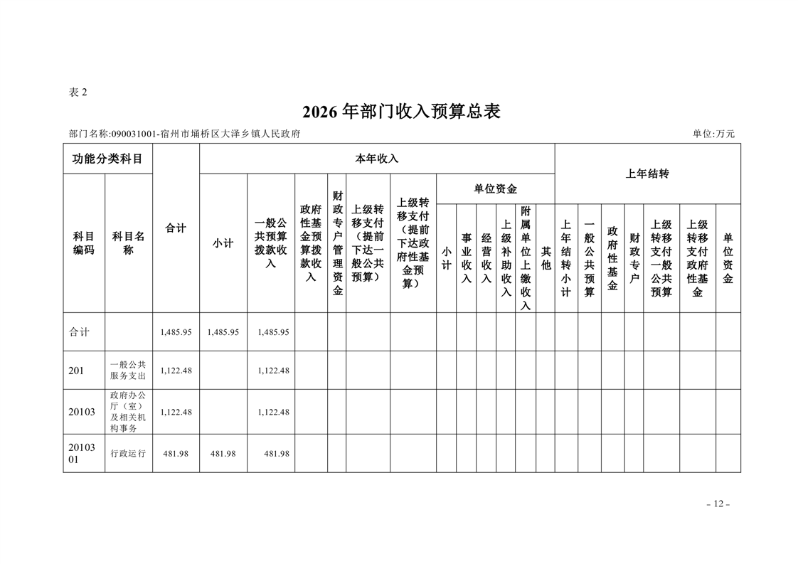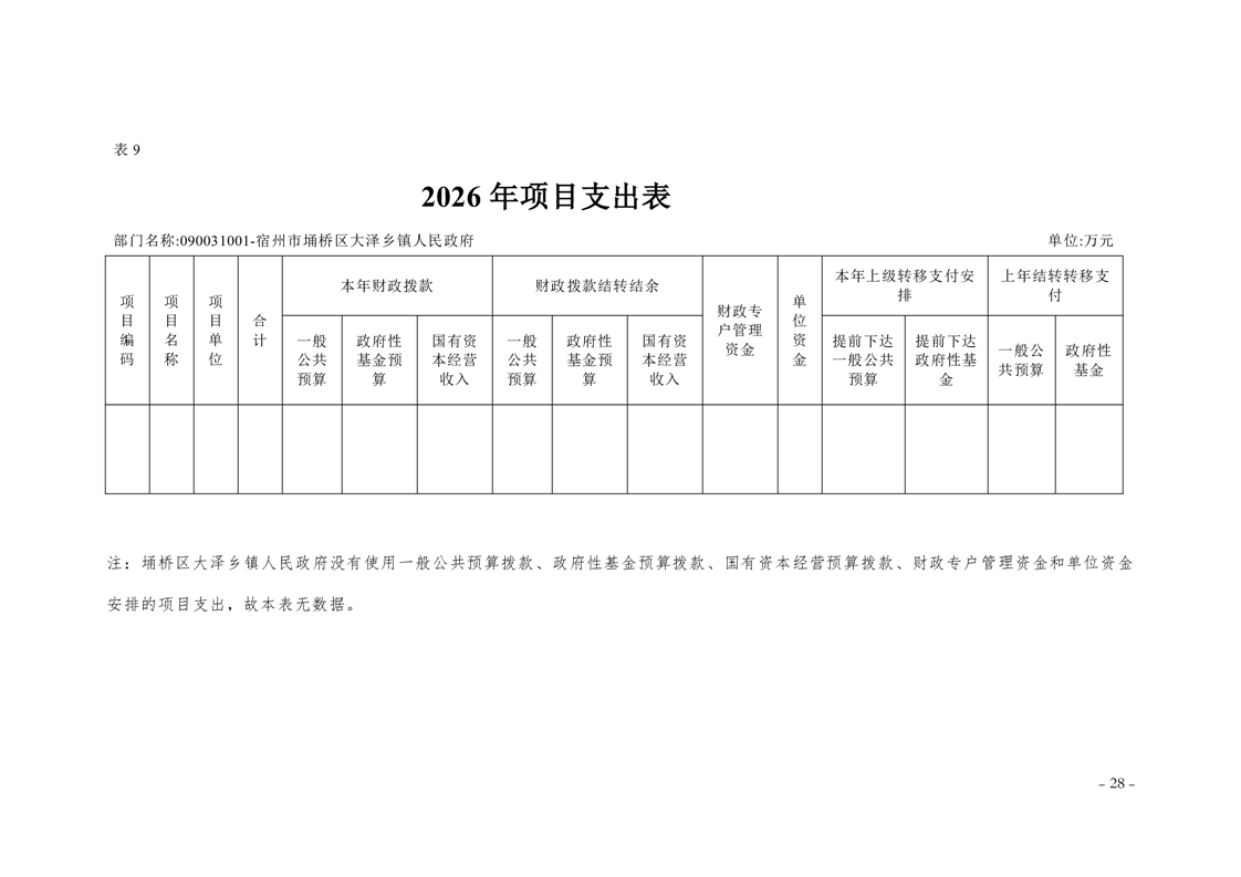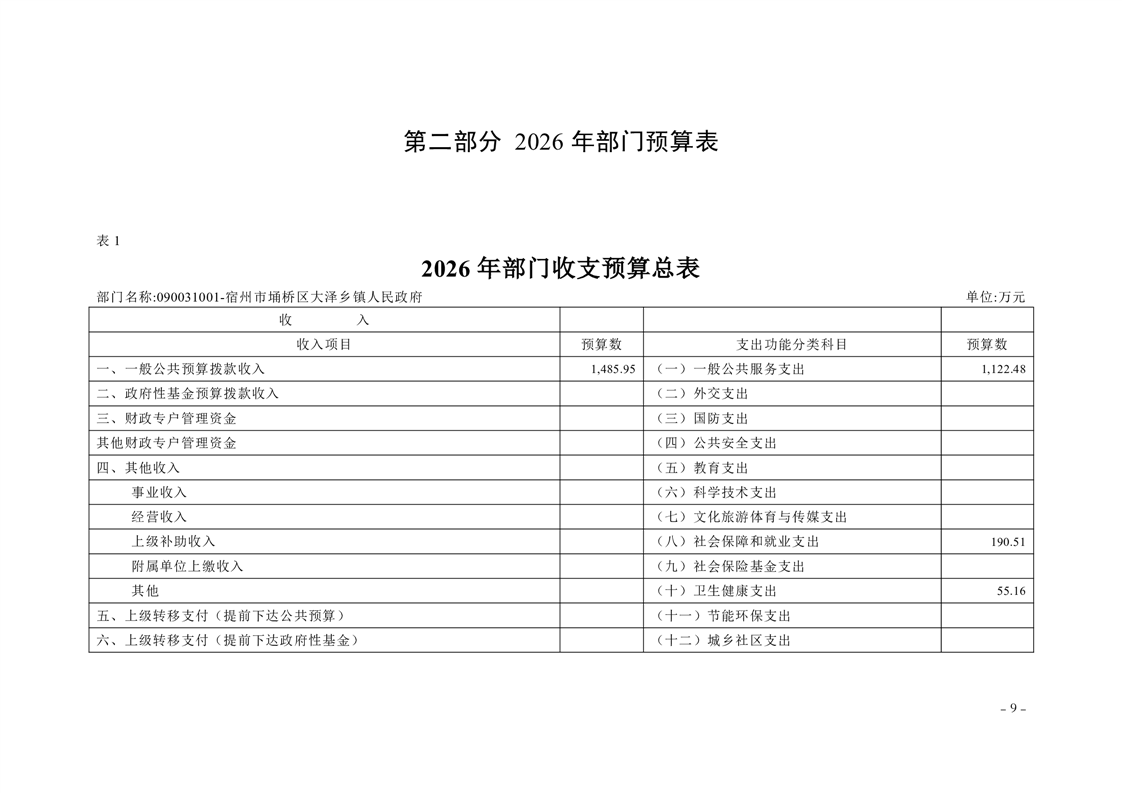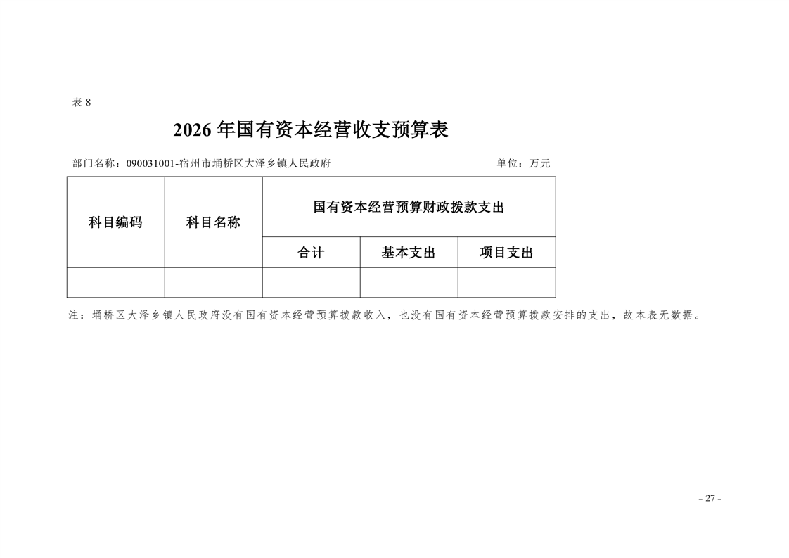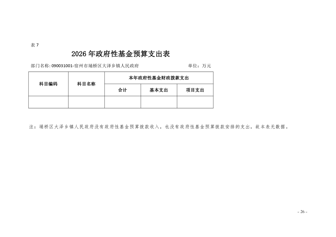宿州市埇桥区大泽乡镇2026年度部门预算