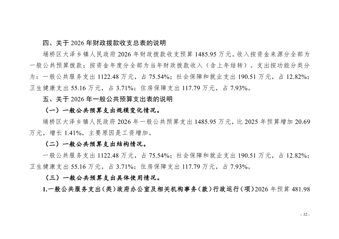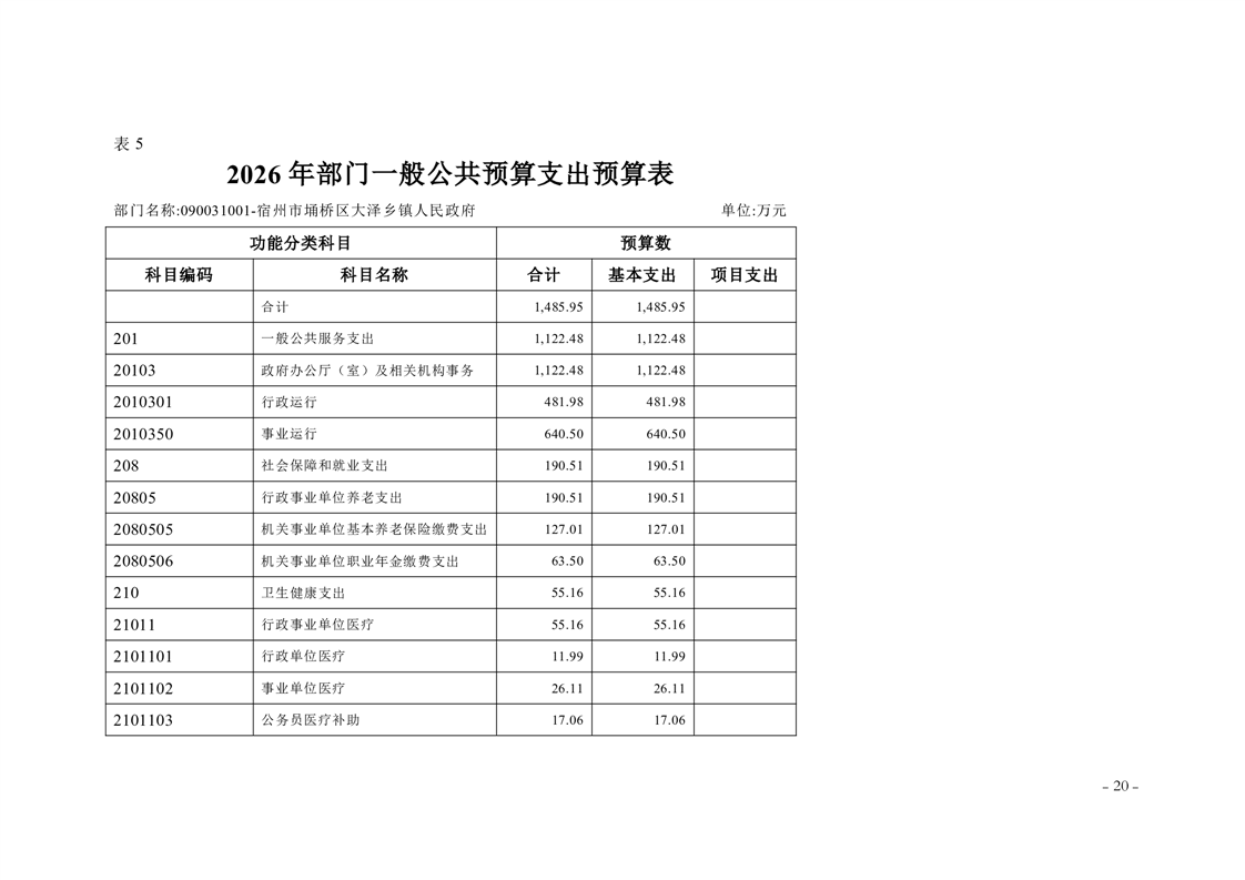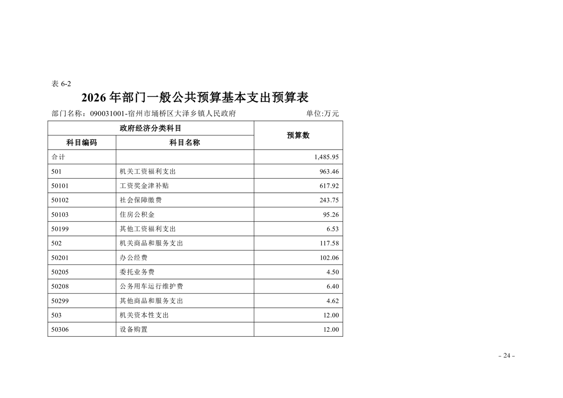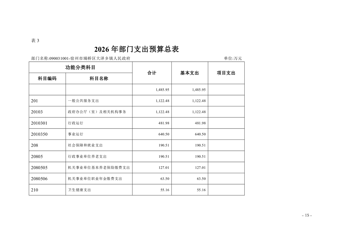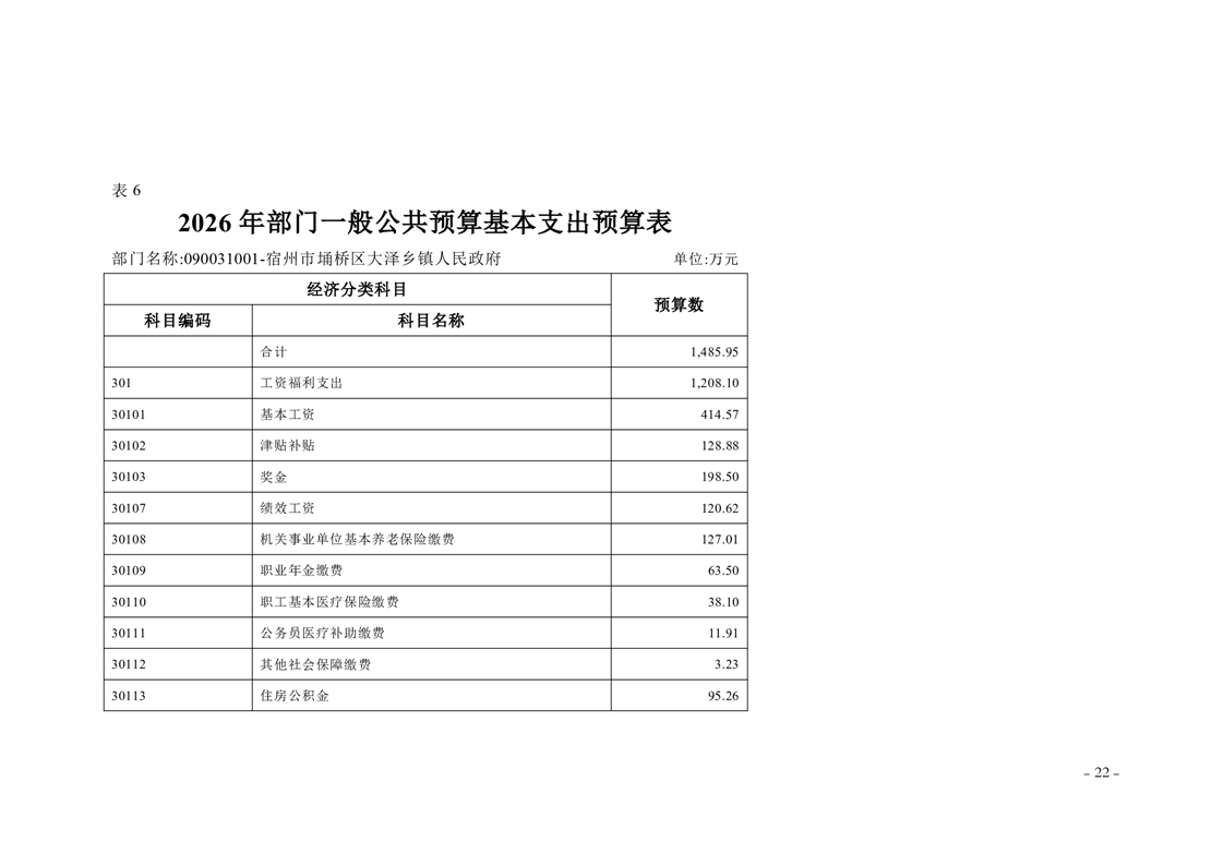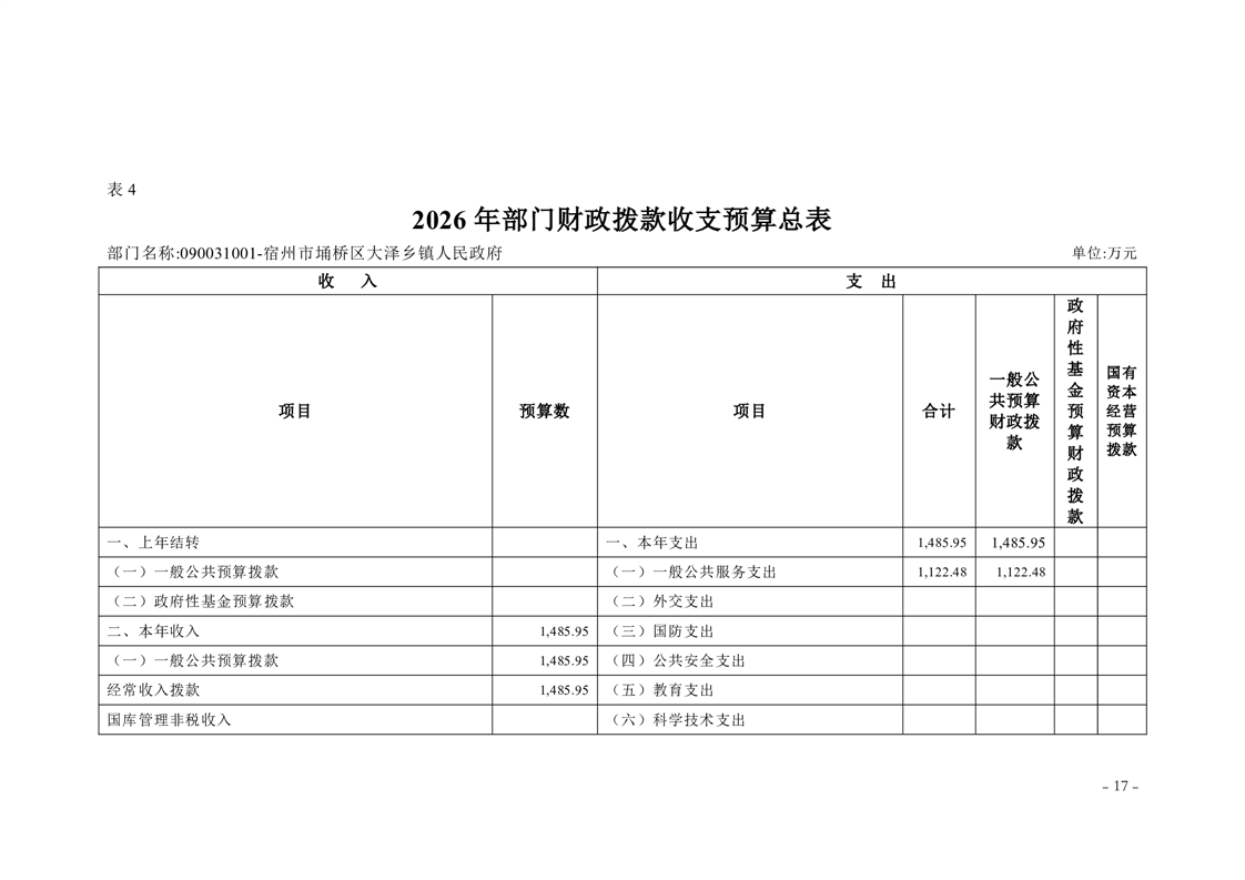 宿州市埇桥区大泽乡镇2026年度部门预算