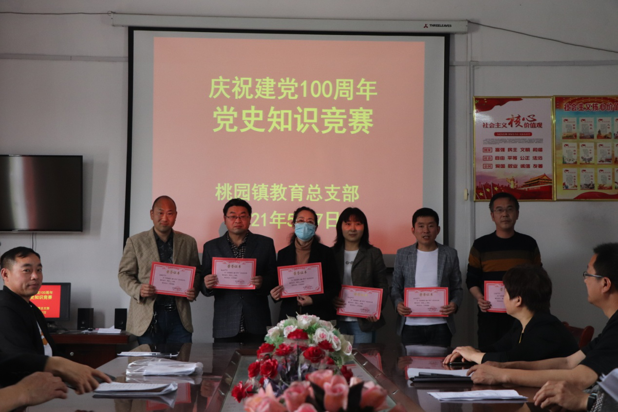 为庆祝中国共产党成立100周年,扎实开展党史学习教育,重温党的历史,5月7日上午,桃园镇教育总支开展了“重温党史辉煌 凝聚奋进力量”党史知识竞赛活动,经各支部选拔的十六名党员选手参加了本次竞赛。经过一个小时的激烈角逐,六名选手分获一二三等奖。本次活动进一步加深了广大党员对党的历史、党的理论、党的路线方针认识。