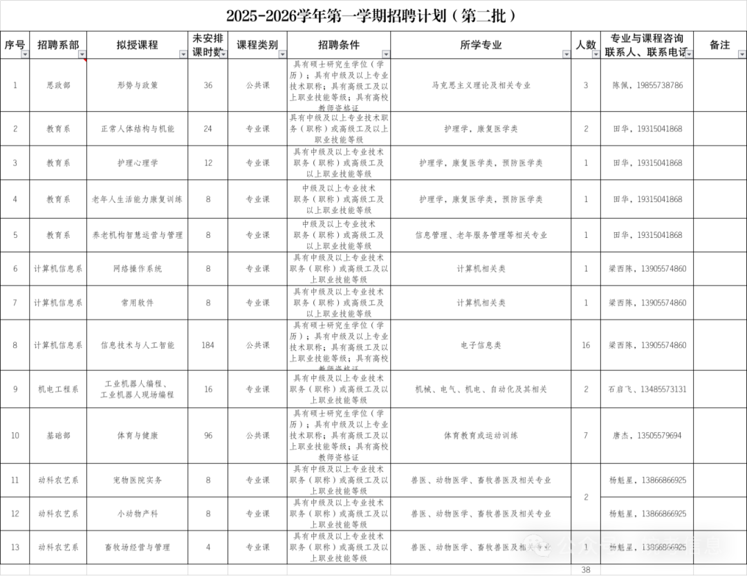 详见《2025-2026学年第一学期招聘计划》(第二批,附件1)。