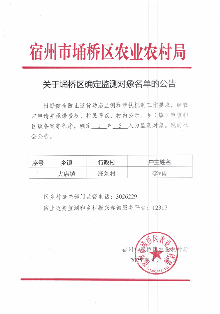 关于埇桥区确定监测对象名单的公告