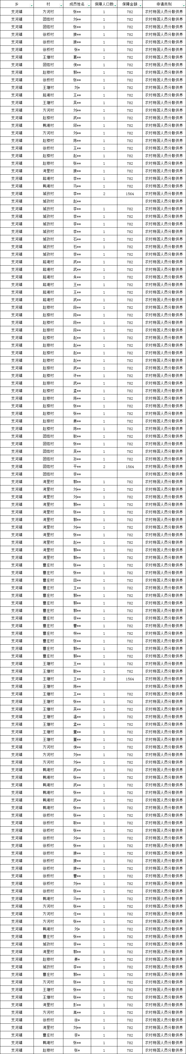 支河镇2026年1月分散五保花名册