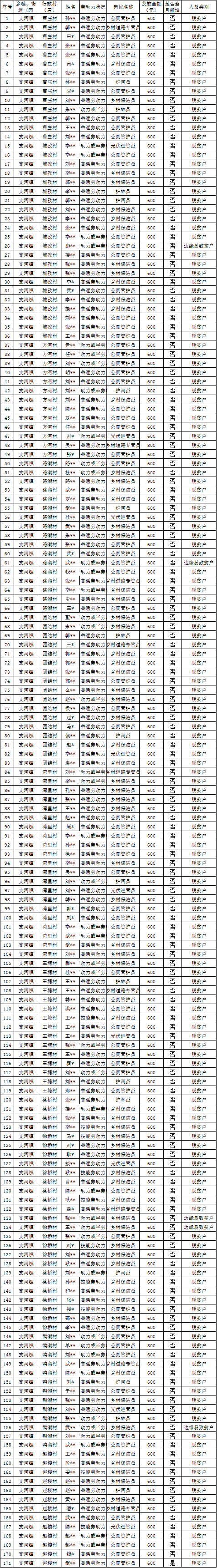 【公益性岗位】2025年10月支河镇乡村公益岗位贫困劳动者花名册