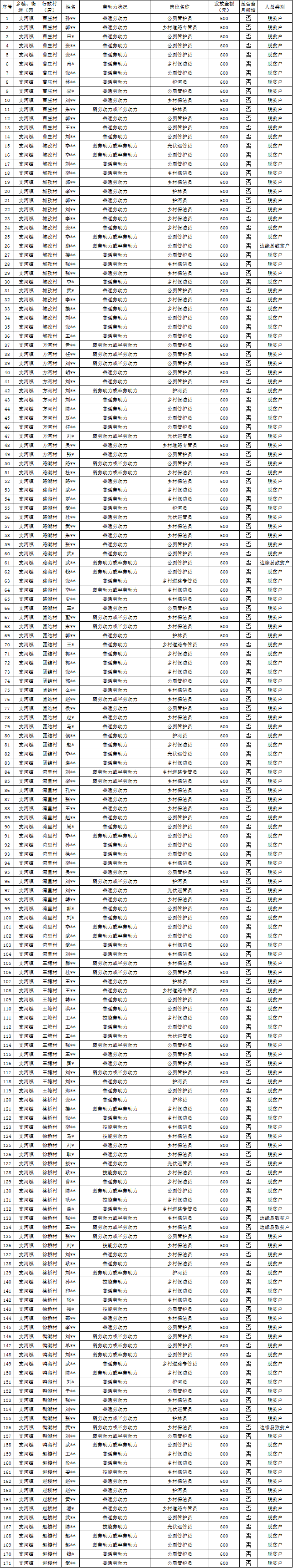 【公益性岗位】2025年12月支河镇乡村公益岗位贫困劳动者花名册
