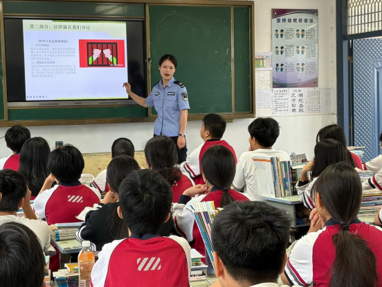 课堂上,司法所工作人员结合初中生年龄特点与认知水平,以“知法于心 守法于行”为主题,用通俗易懂的语言和真实案例展开讲解。一方面,围绕《中华人民共和国未成年人保护法》《中华人民共和国预防未成年人犯罪法》等核心法律,重点解读了校园欺凌、网络安全、不良交友等常见风险的法律界定与危害,明确告知学生哪些行为属于“不良行为”“严重不良行为”,以及触犯法律后将承担的后果;另一方面,通过互动提问的方式,引导学生思考“遇到校园欺凌该如何应对”“收到不明网络信息该怎么做”等实际问题,现场传授“及时告知老师和家长”“保留证据报警”等自我保护方法,帮助学生学会用法律武器维护自身合法权益。