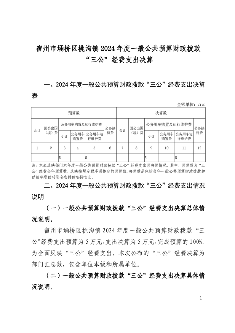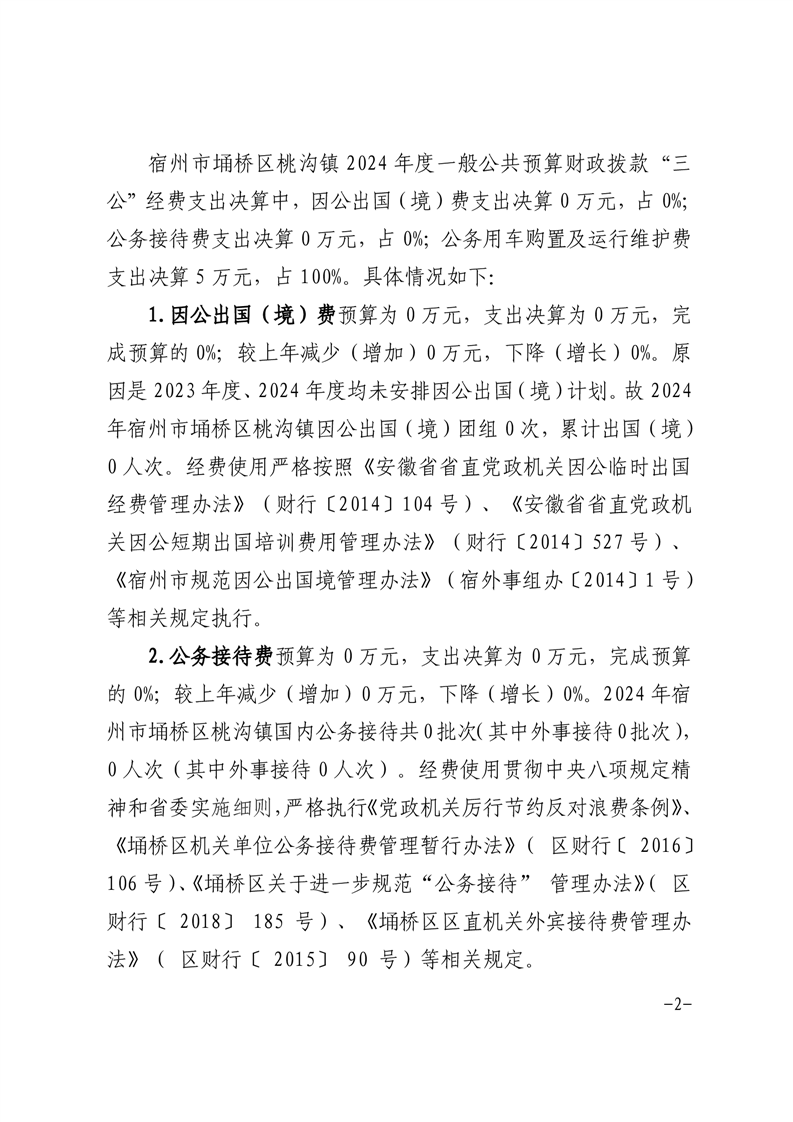 宿州市埇桥区桃沟镇2024年度一般公共预算财政拨款“三公”经费支出决算