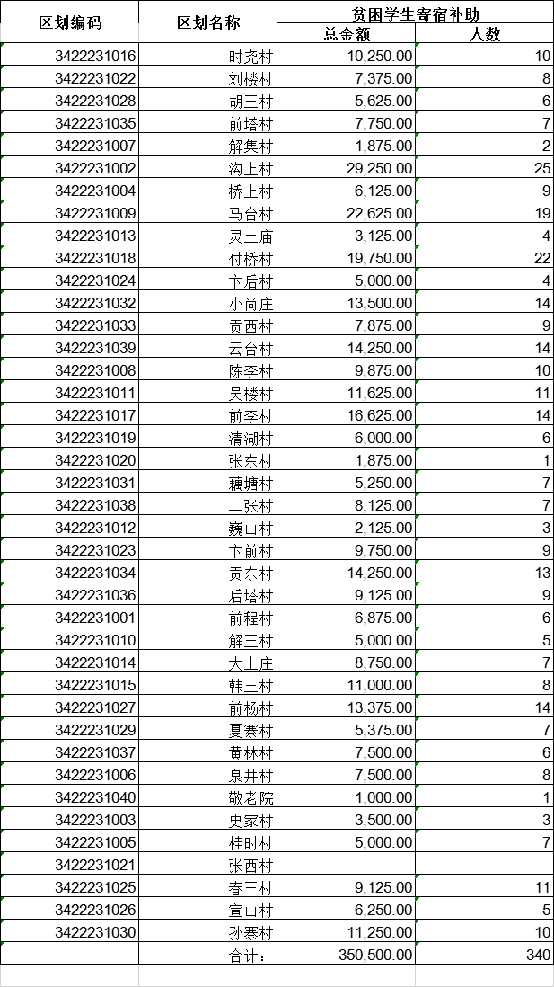 解集乡2020年贫困学生寄宿补助