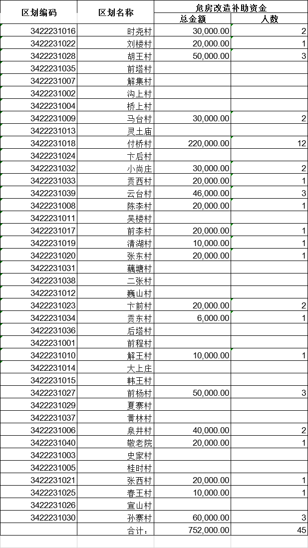 解集乡2020年危房改造补助资金安排